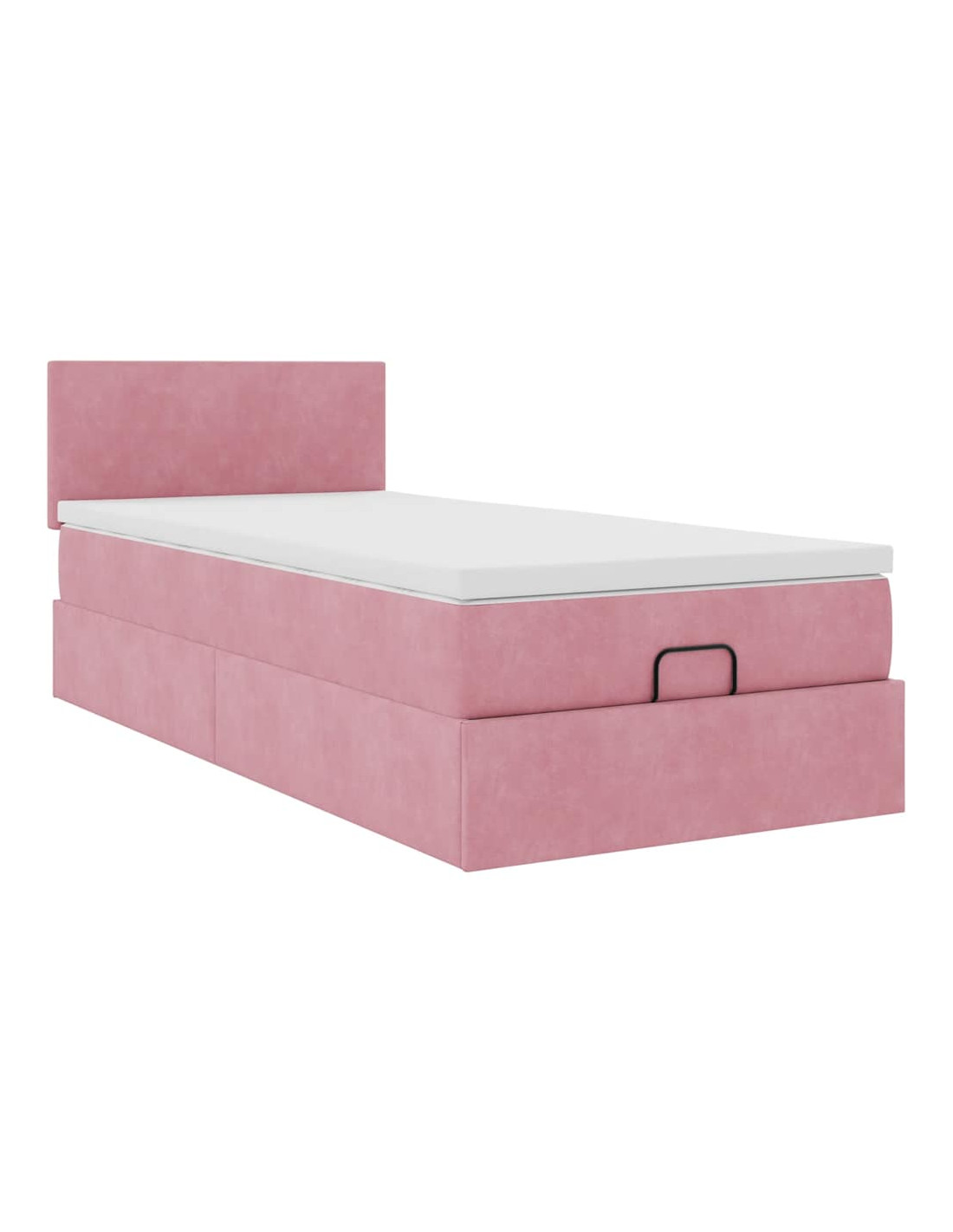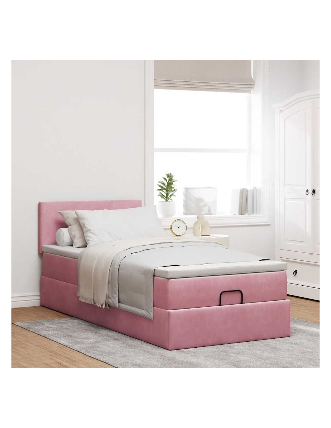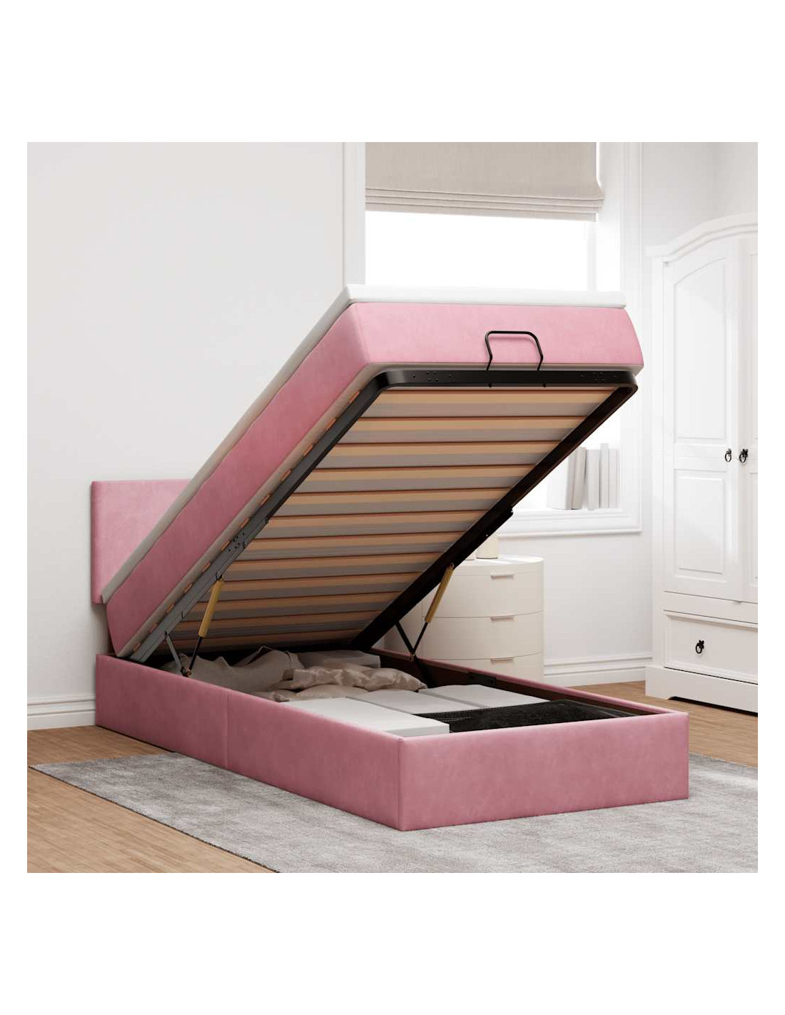 Struttura Letto Pouf con Materasso Rosa 100x200 cm Velluto