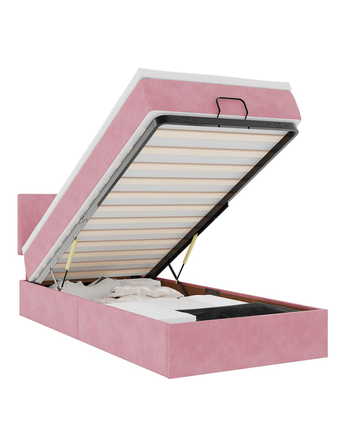 Struttura Letto Pouf con Materasso Rosa 80x200 cm Velluto