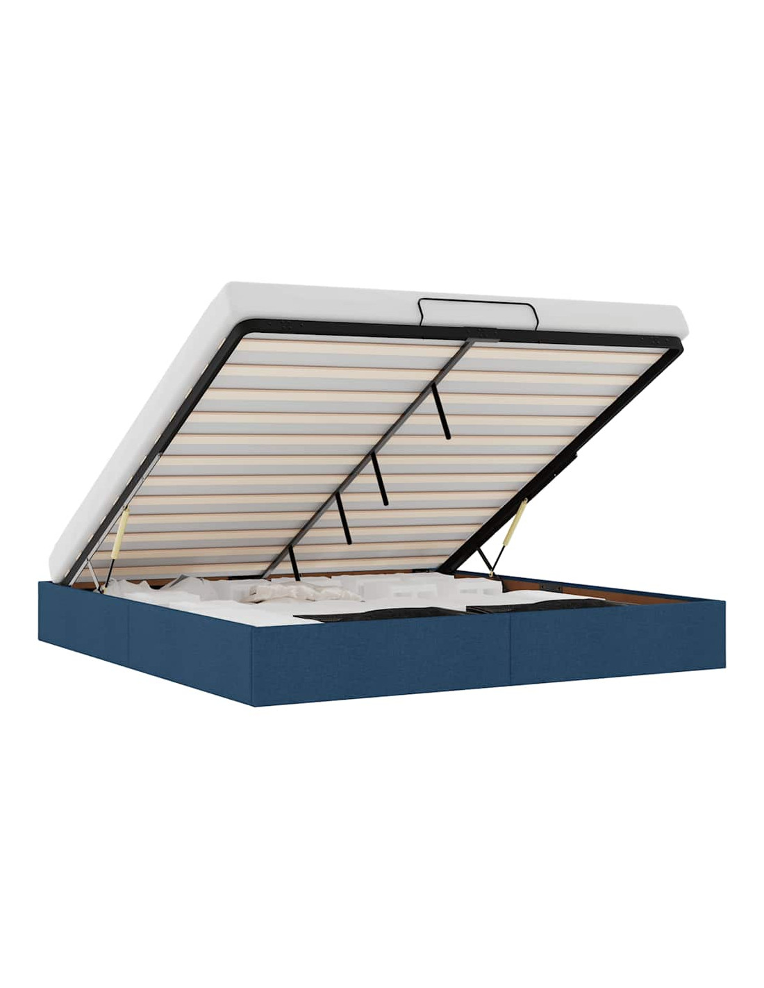 - Comodo meccanismo di sollevamento: Il meccanismo di sollevamento idraulico integrato consente un facile accesso agli effetti personali riposti sotto il letto. Con una semplice trazione della maniglia, la base a doghe si solleva dolcemente, permettendoti di recuperare i tuoi oggetti in modo rapido e senza sforzo.