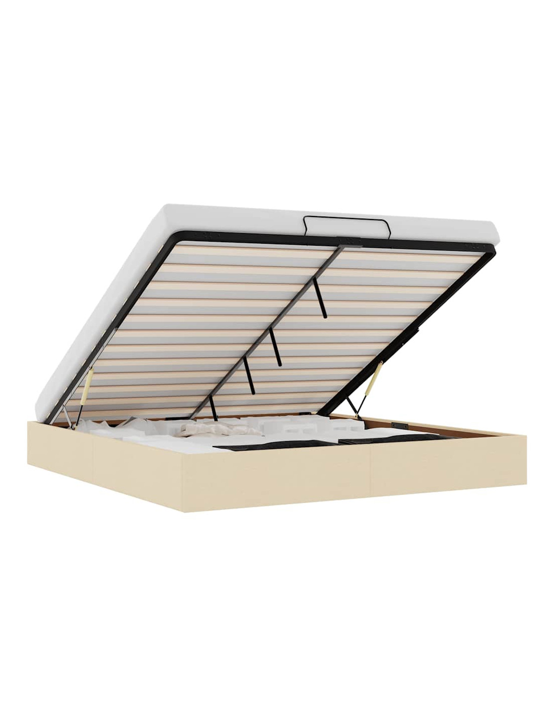 - Comodo meccanismo di sollevamento: Il meccanismo di sollevamento idraulico integrato consente un facile accesso agli effetti personali riposti sotto il letto. Con una semplice trazione della maniglia, la base a doghe si solleva dolcemente, permettendoti di recuperare i tuoi oggetti in modo rapido e senza sforzo.