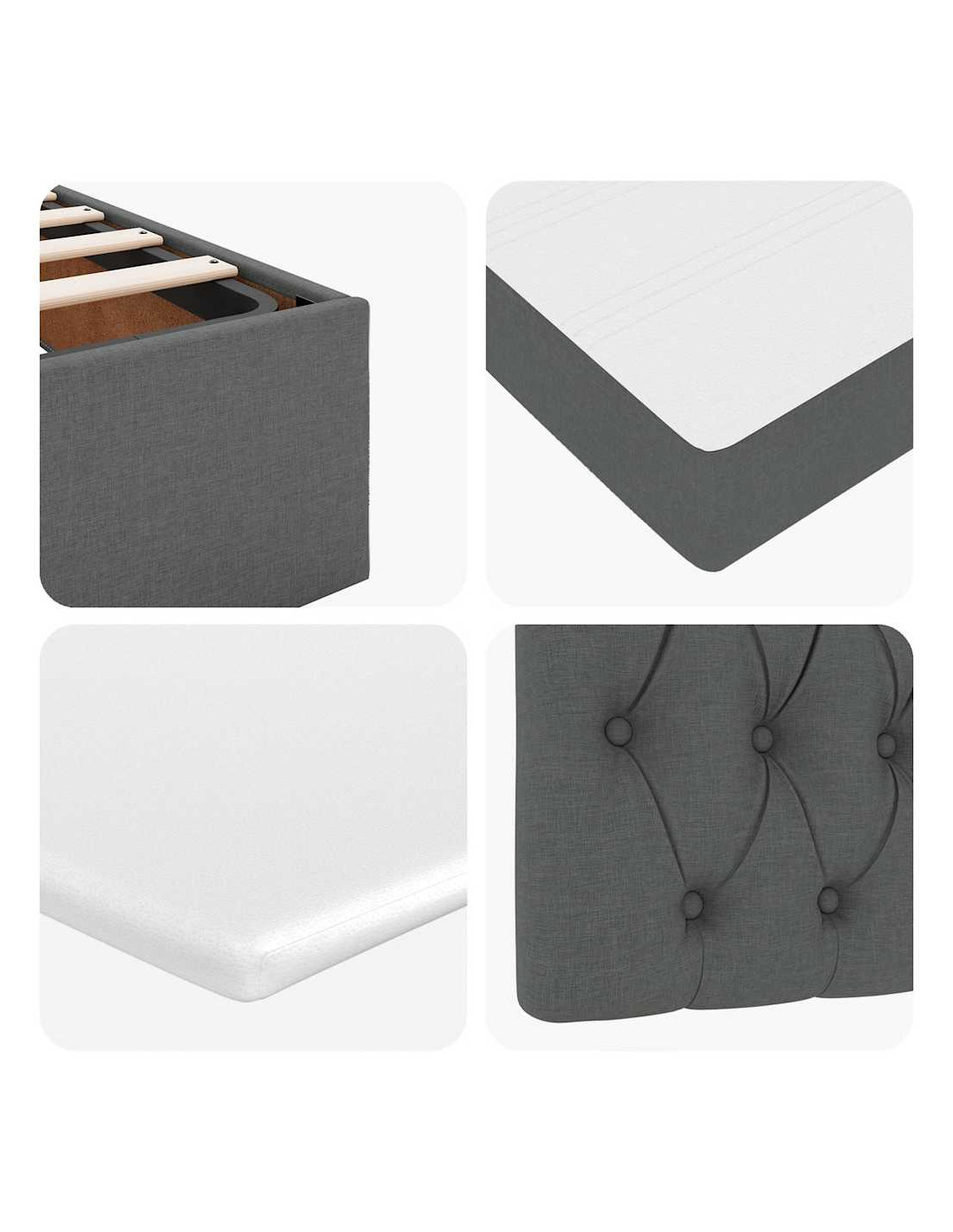 - Ampio vano portaoggetti sotto il letto: Grazie al meccanismo di sollevamento idraulico, il giroletto offre un ampio spazio sotto il letto, massimizzando lo spazio senza occupare ulteriore spazio sul pavimento. Con una semplice trazione della maniglia, la base a doghe si solleva dolcemente, permettendoti di recuperare i tuoi oggetti in modo rapido e senza sforzo.