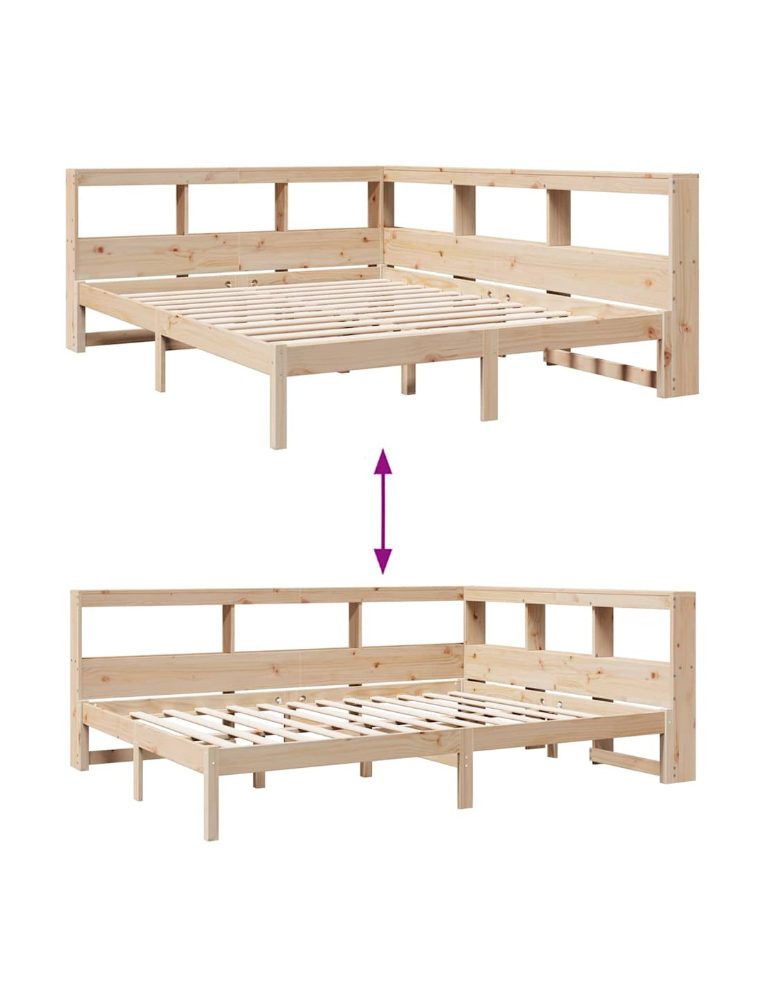 Letto Libreria senza Materasso 150x200 cm in Legno di Pino