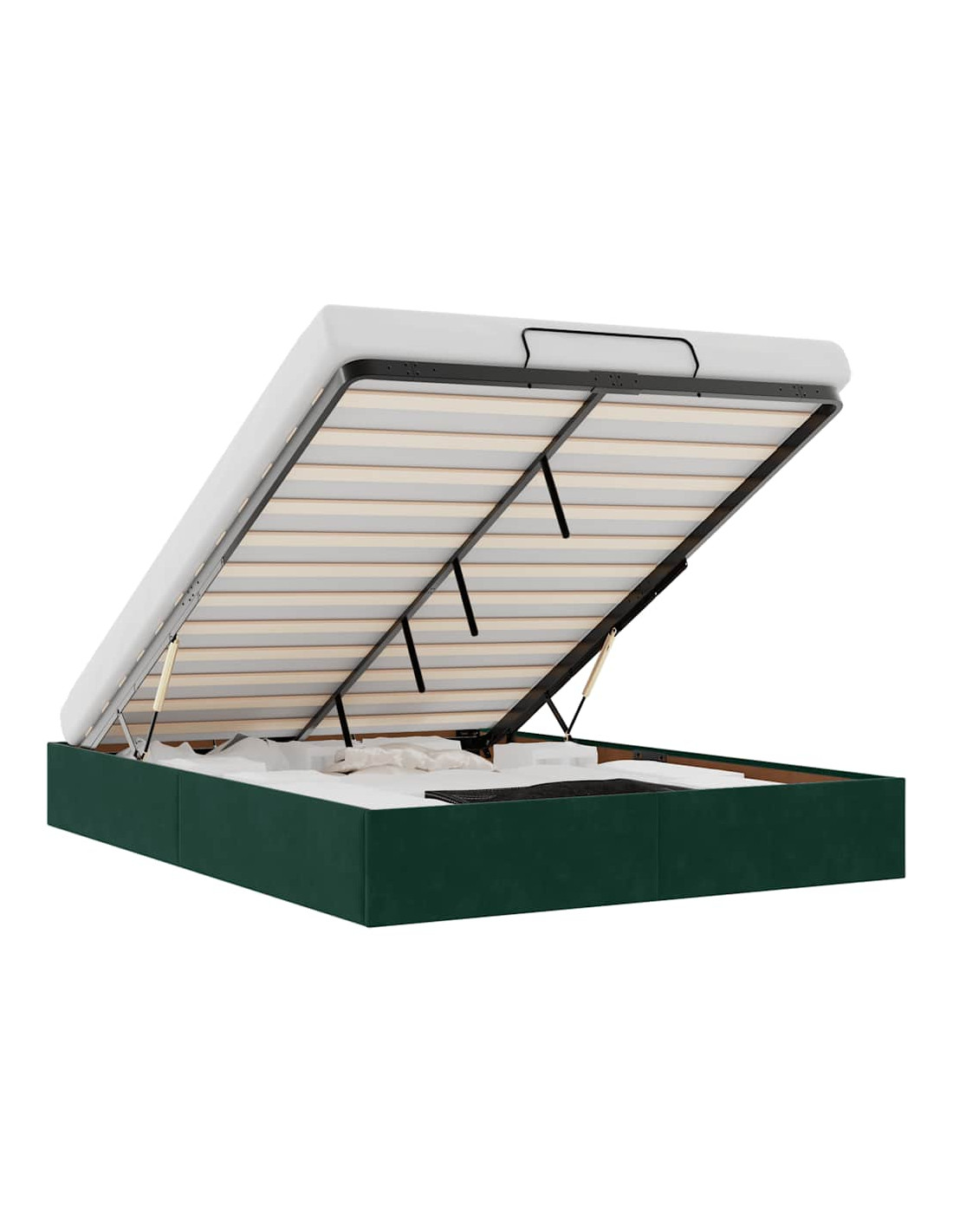 - Comodo meccanismo di sollevamento: Il meccanismo di sollevamento idraulico integrato consente un facile accesso agli effetti personali riposti sotto il letto. Con una semplice trazione della maniglia, la base a doghe si solleva dolcemente, permettendoti di recuperare i tuoi oggetti in modo rapido e senza sforzo.