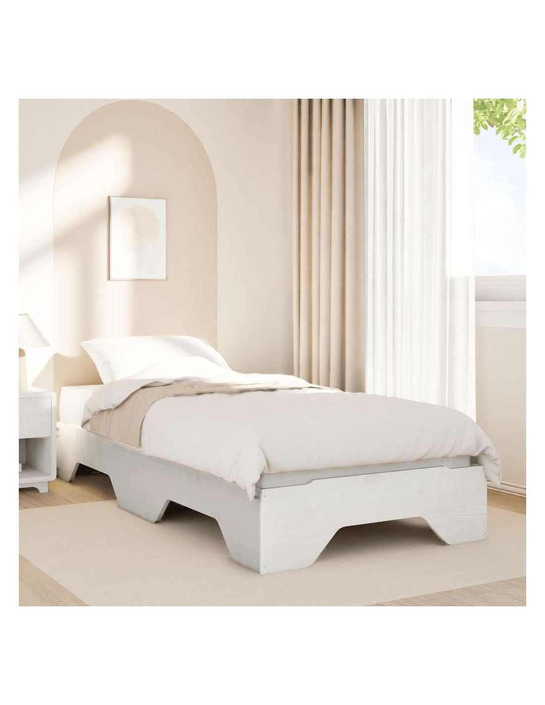 Questa struttura letto impilabile in legno offre una soluzione pratica e poco ingombrante per ogni casa.