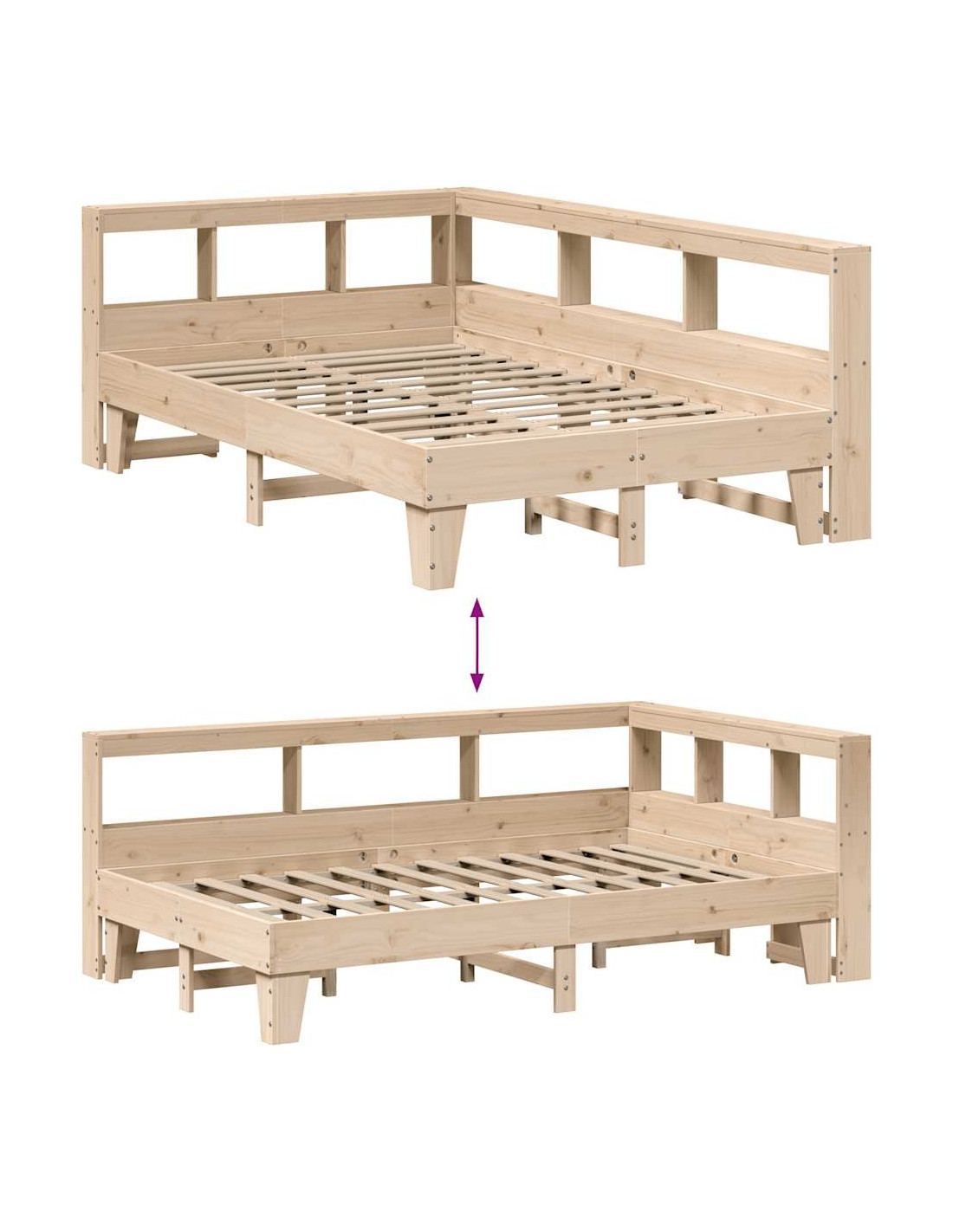 - Telaio stabile e durevole: Il legno massello di pino è noto per la sua resistenza e la sua durata. Le sue venature dritte e i suoi nodi caratteristici contribuiscono al suo fascino rustico.