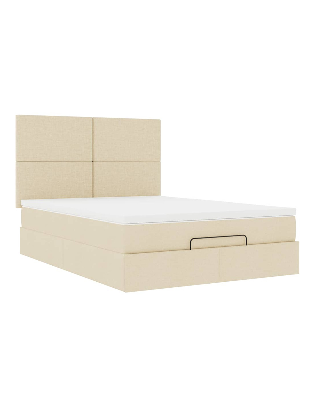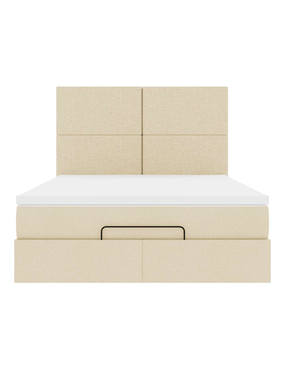 Struttura Letto Pouf con Materasso Crema 140x190 cm in Tessuto