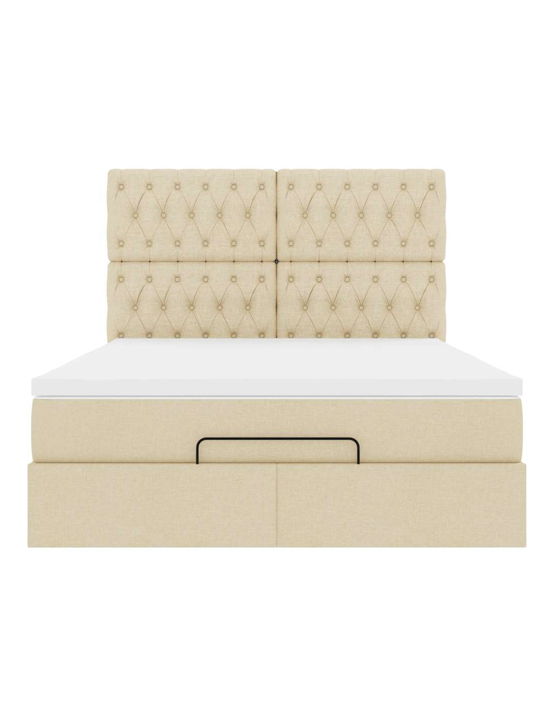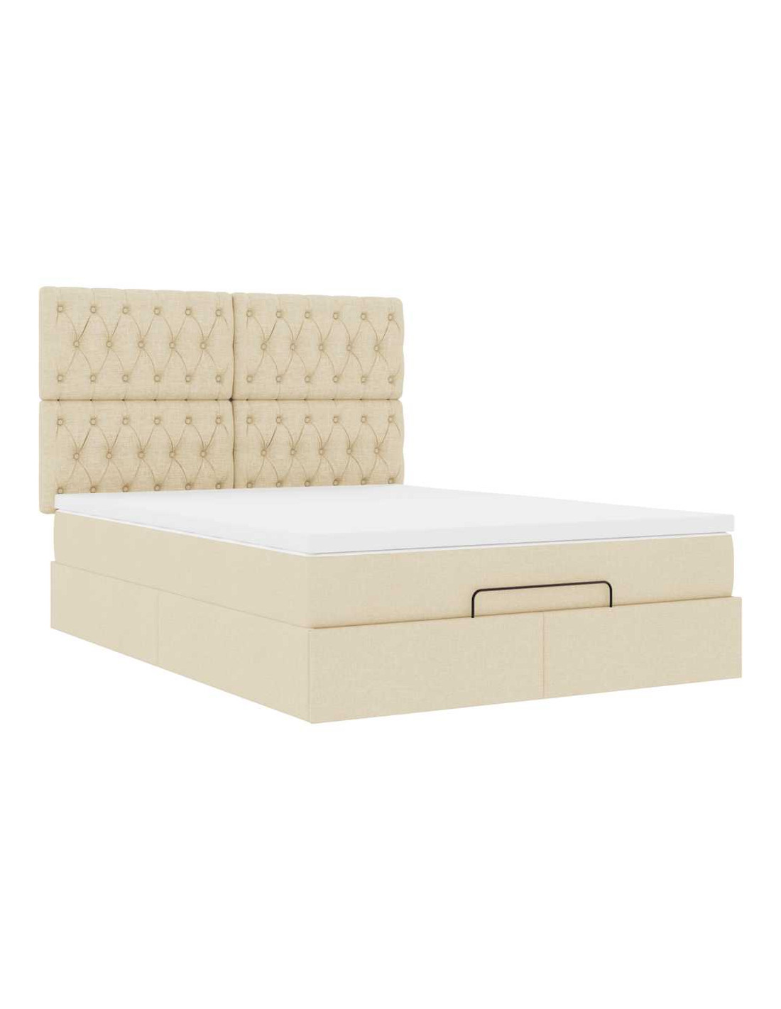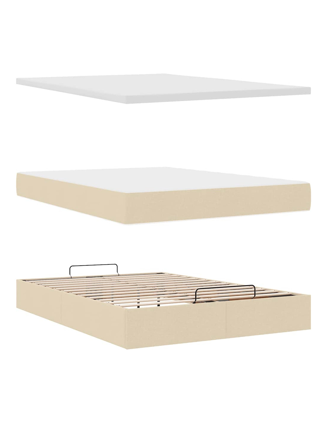 Struttura Letto Pouf con Materasso Crema 140x190 cm in Tessuto