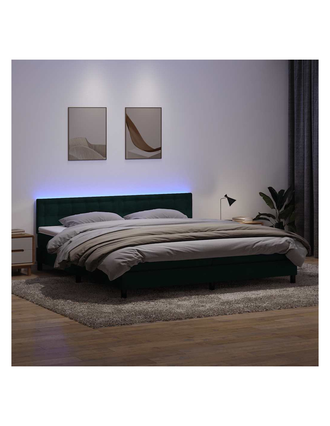 Letto a Molle con Materasso e LED Verde Scuro 180x220 cm Velluto