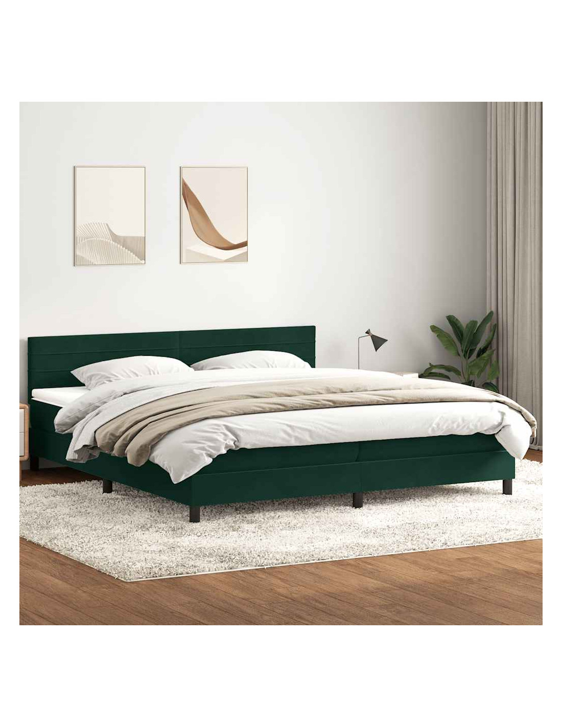 Giroletto a Molle con Materasso Verde Scuro 180x220 cm Velluto