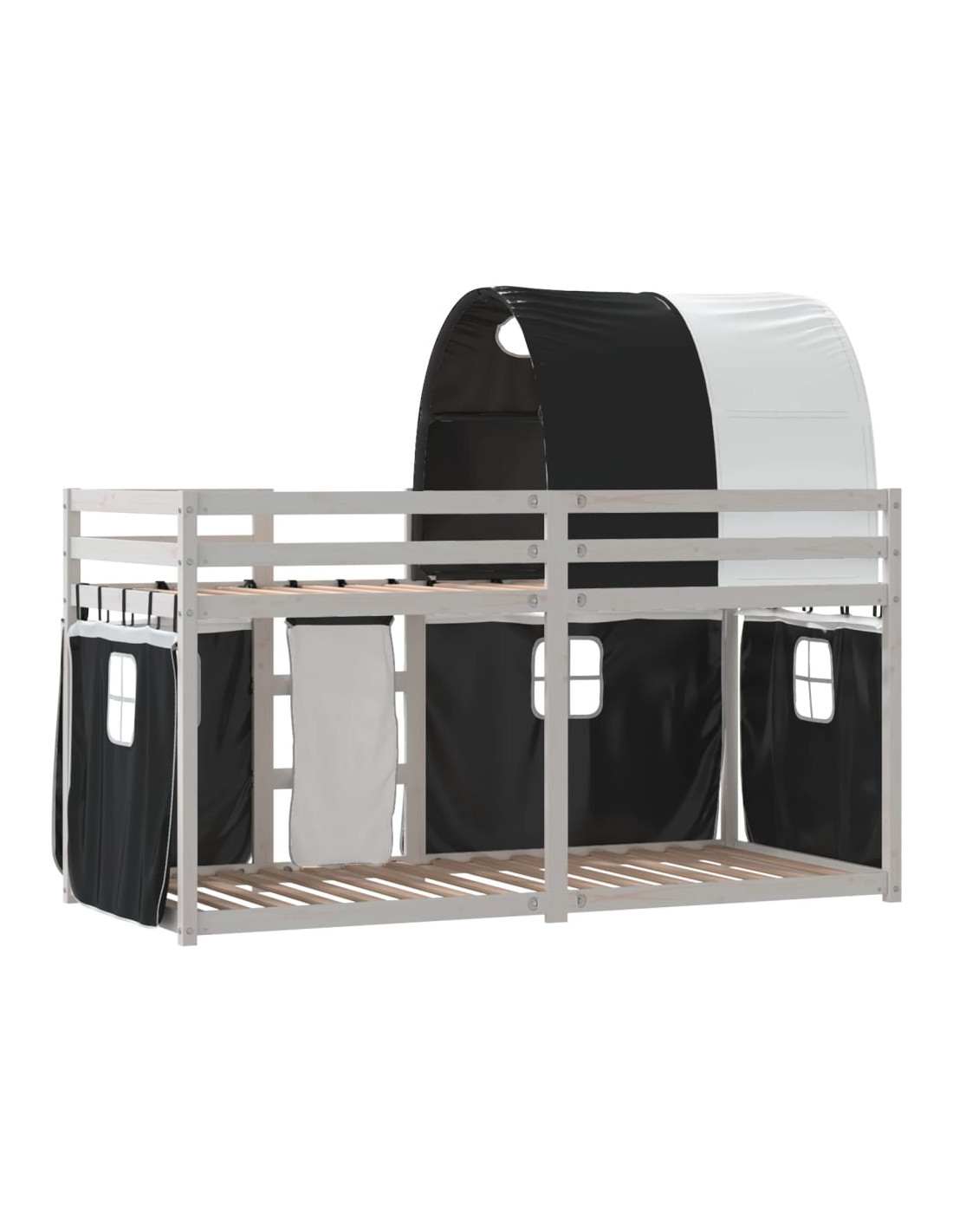 - Legno massello di pino: Questo letto a castello è realizzato in legno massello di pino per offrire stabilità e durata. Il legno di pino ha le venature dritte e i nodi conferiscono al materiale il suo caratteristico aspetto rustico.