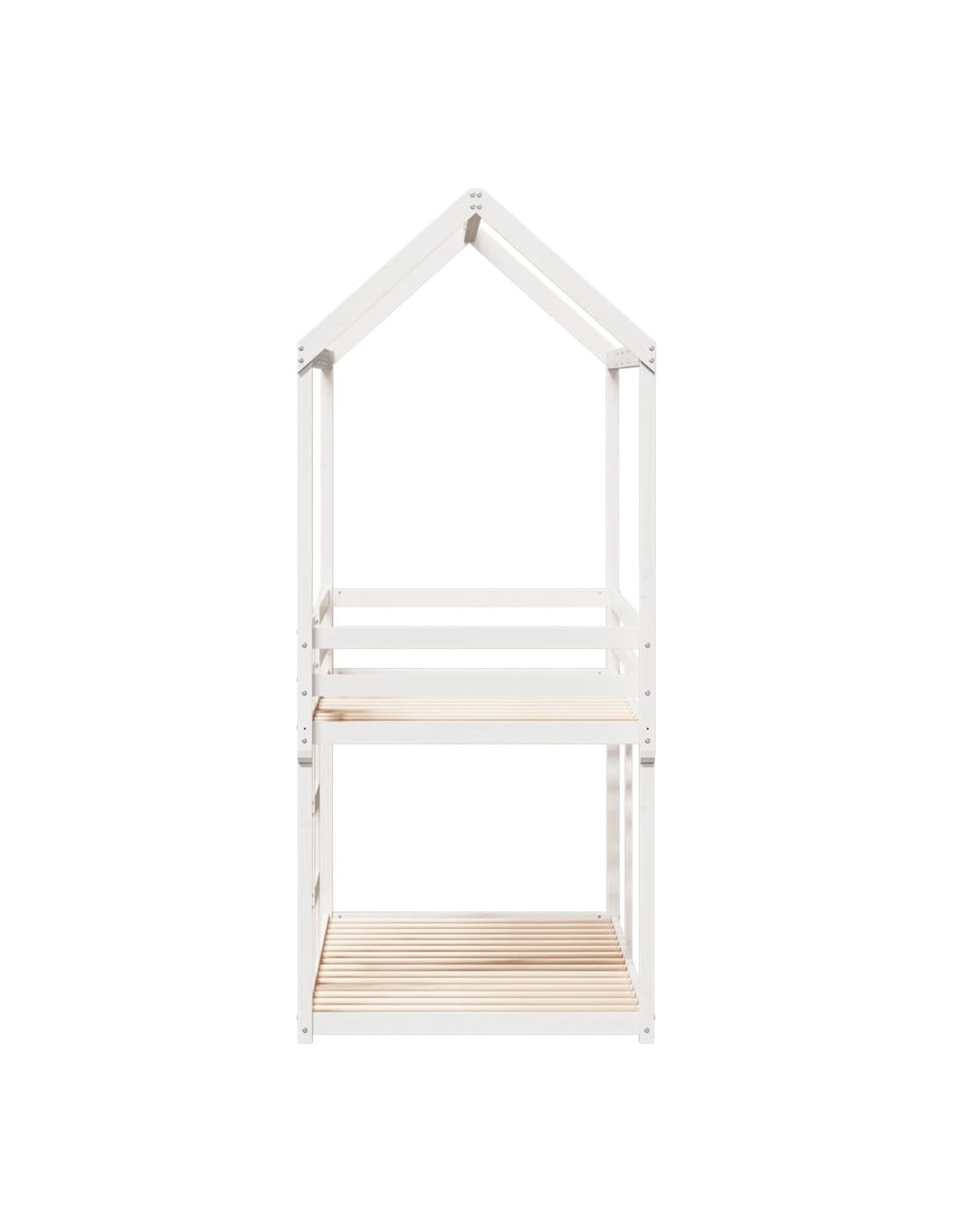 Questo letto a castello per bambini in legno con tetto è elegante e funzionale, il che lo rende un complemento perfetto per qualsiasi stanza con spazio limitato.