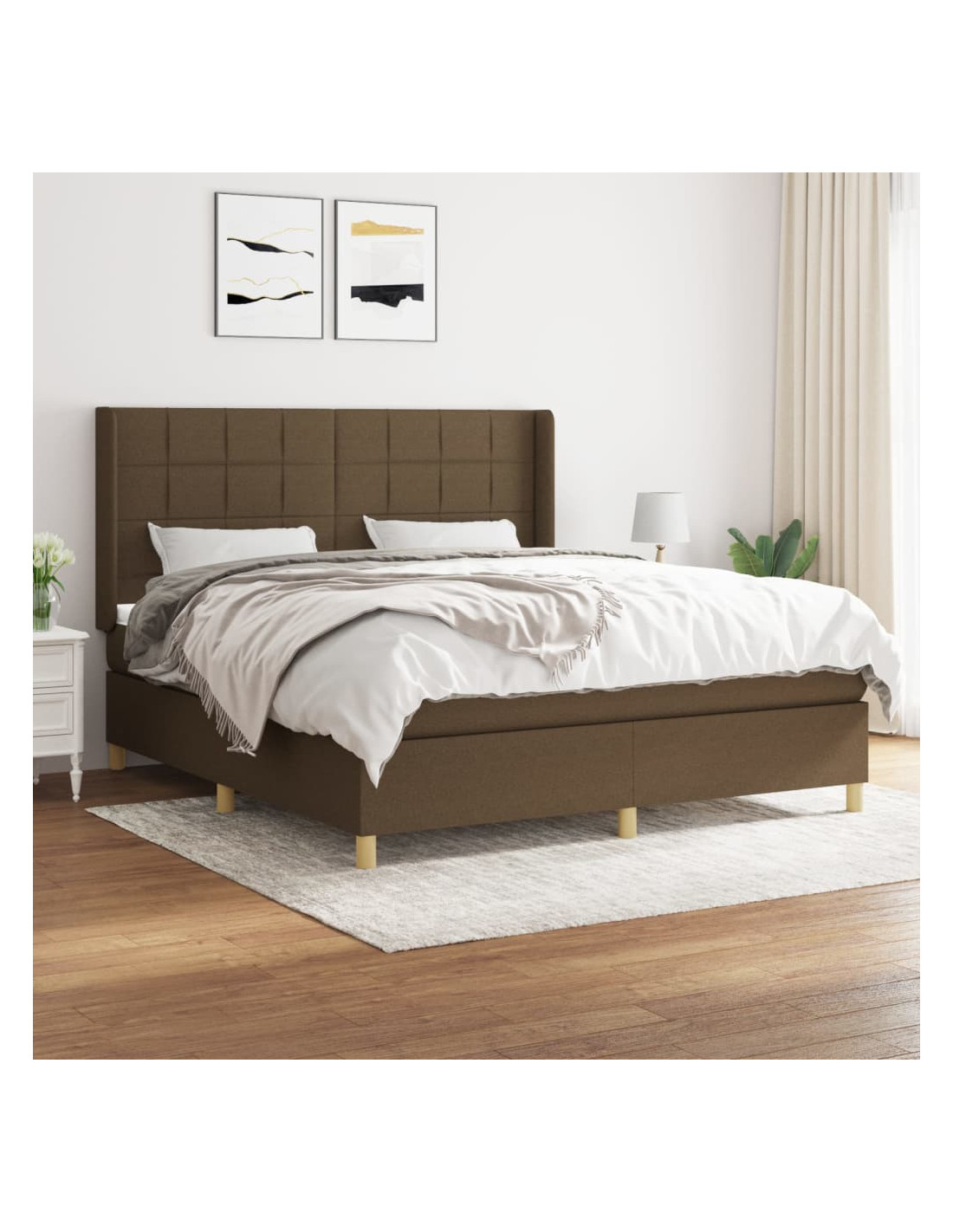 Giroletto a Molle con Materasso Marrone Scuro 160x200cm Tessuto