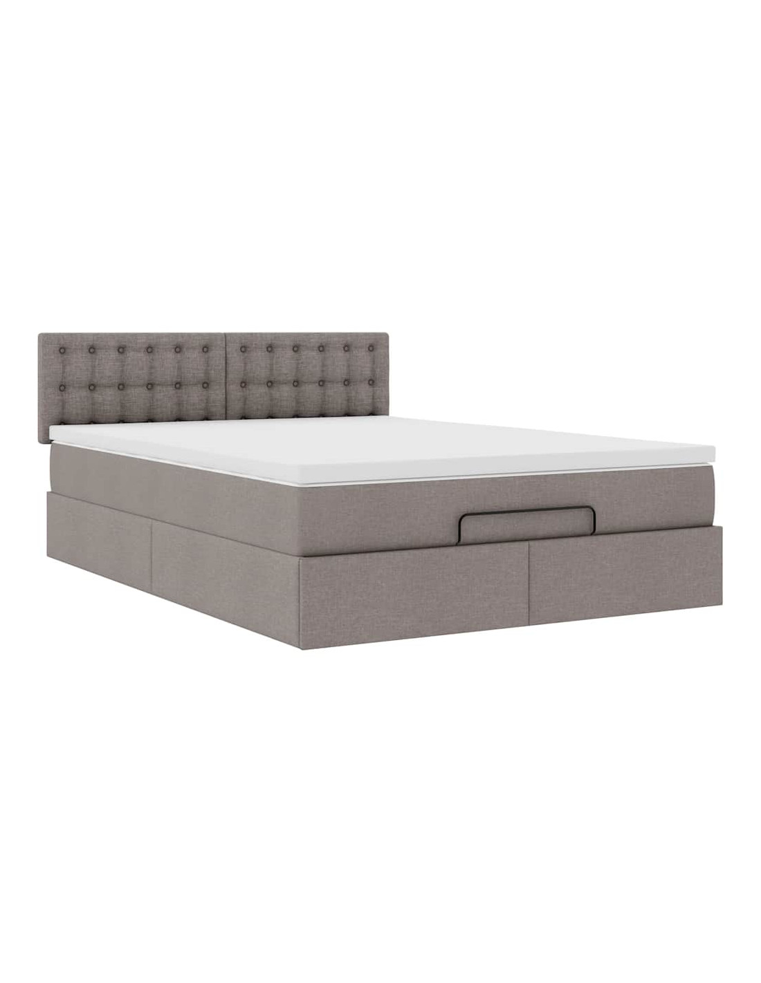Pouf Letto con Materasso e LED Tortora 140x190 cm in Tessuto