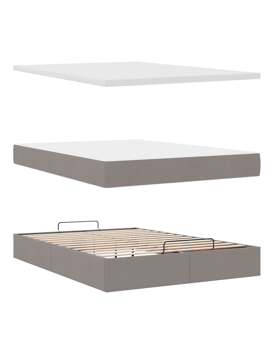 - Ampio vano portaoggetti sotto il letto: Grazie al meccanismo di sollevamento idraulico, il giroletto offre un ampio spazio sotto il letto, massimizzando lo spazio senza occupare ulteriore spazio sul pavimento. Con una semplice trazione della maniglia, la base a doghe si solleva dolcemente, permettendoti di recuperare i tuoi oggetti in modo rapido e senza sforzo.