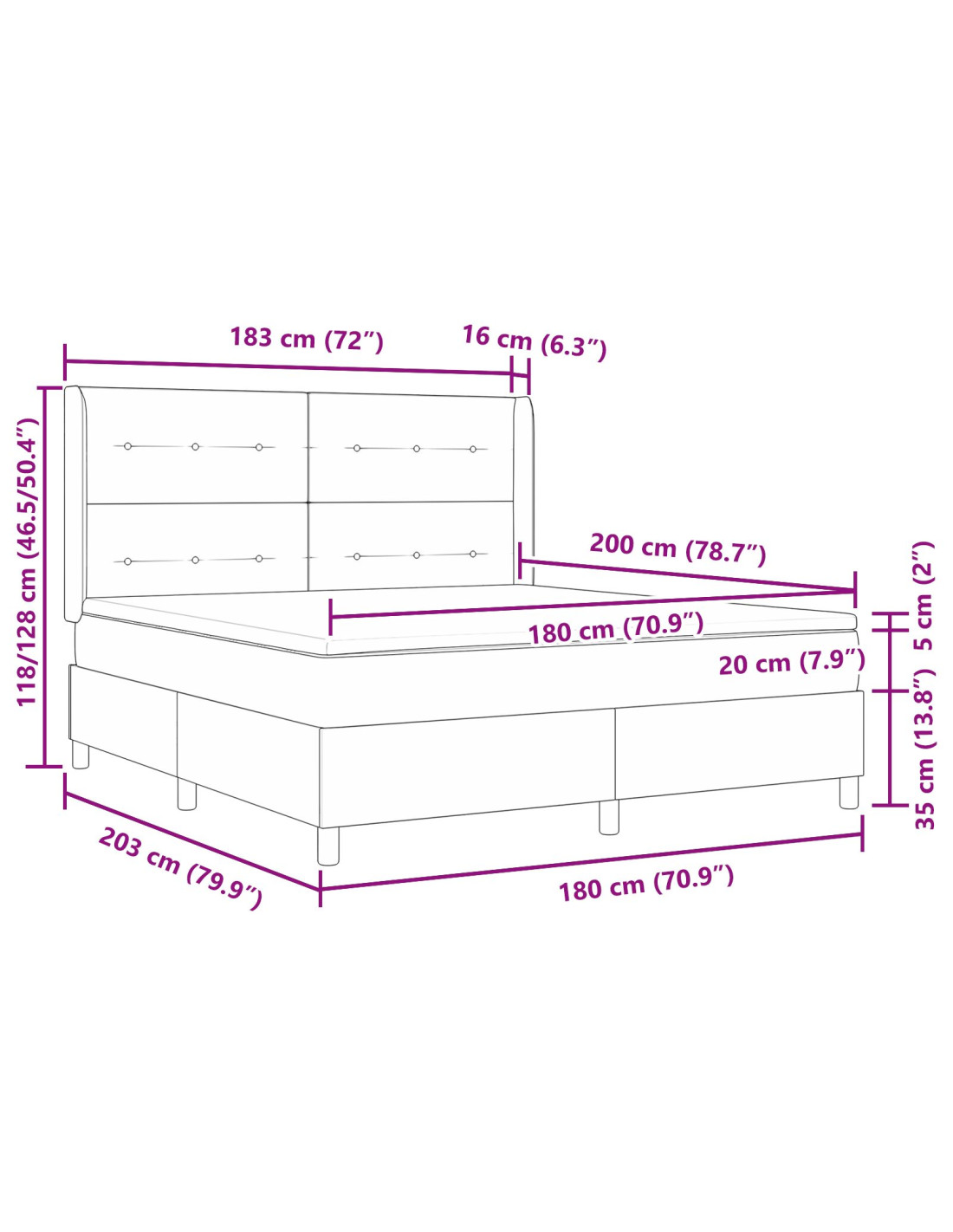 - Dimensione materasso: Super king (180 cm x 200 cm / 71" x 79")