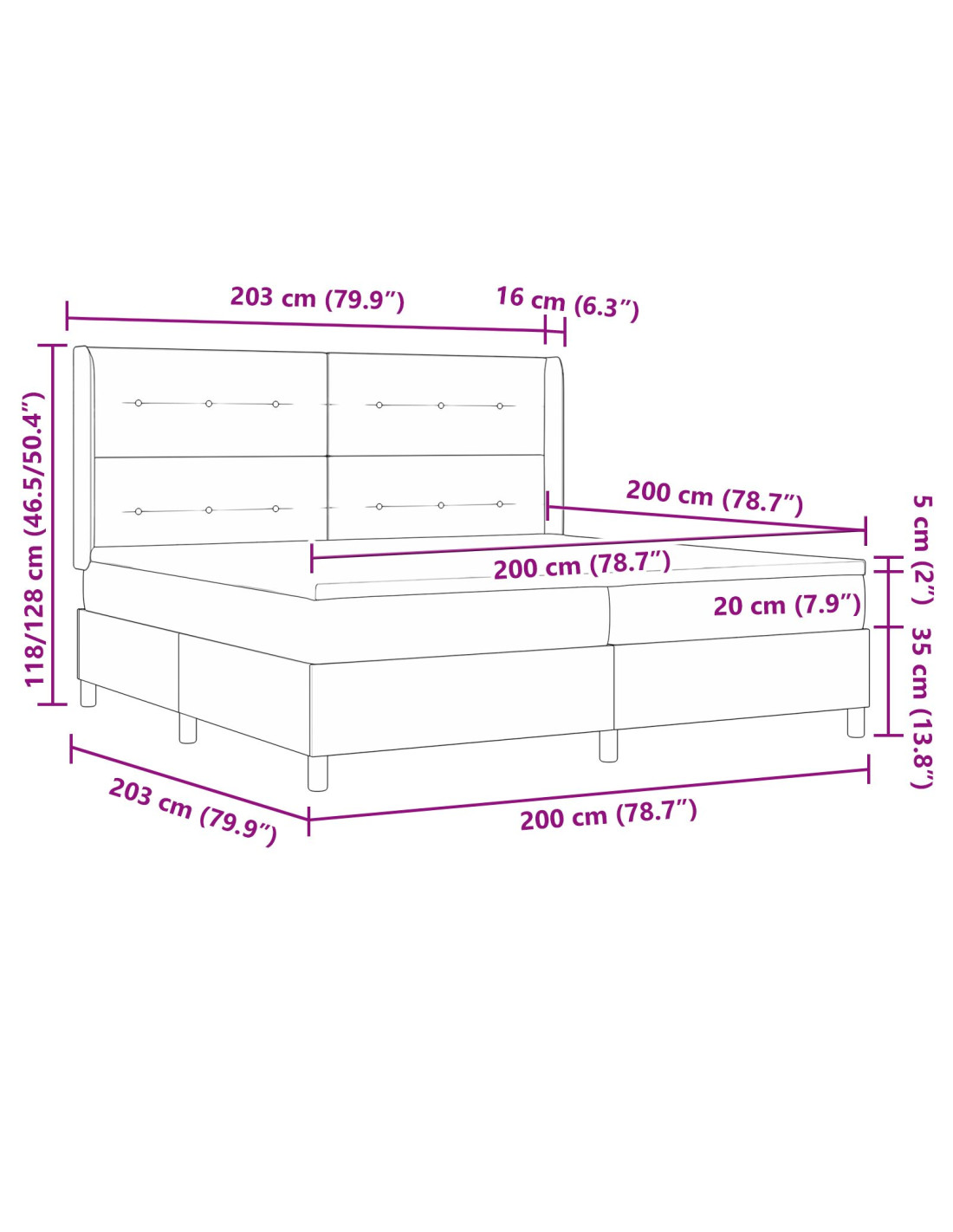 - 1x Letto: 203 x 93 x 35 cm (LxWxH)