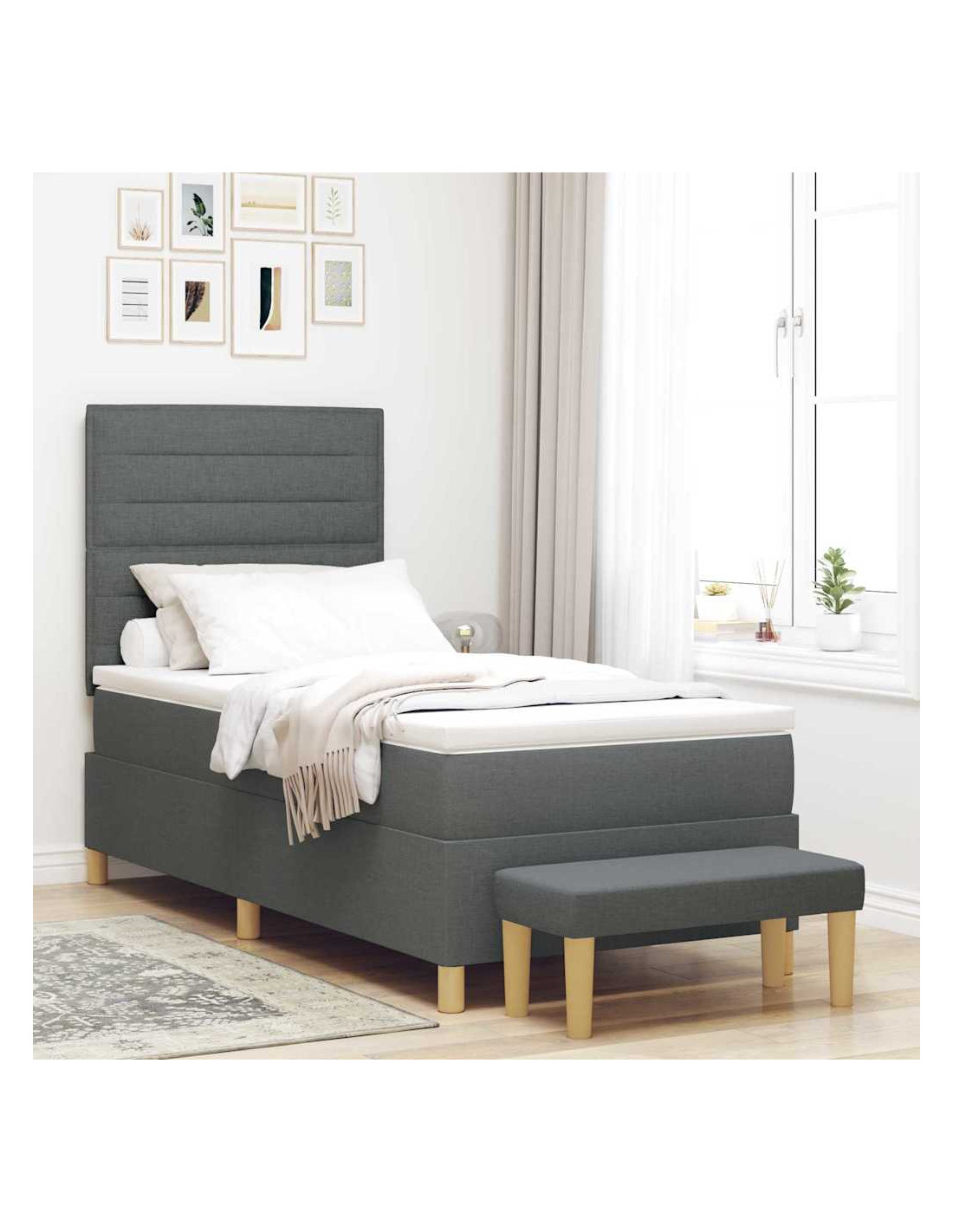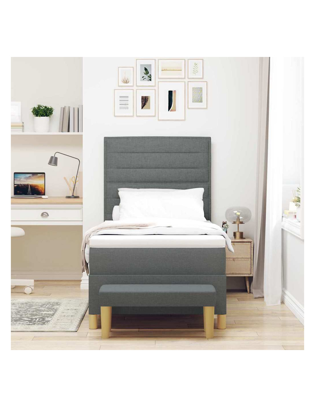 - Componenti Inclusi: Prendi tutto ciò che ti serve per dormire: un robusto telaio del letto, una testata imbottita in poliestere, un materasso in schiuma medio-rigido e una panca utile. Ogni pezzo contribuisce a una fantastica esperienza di sonno.