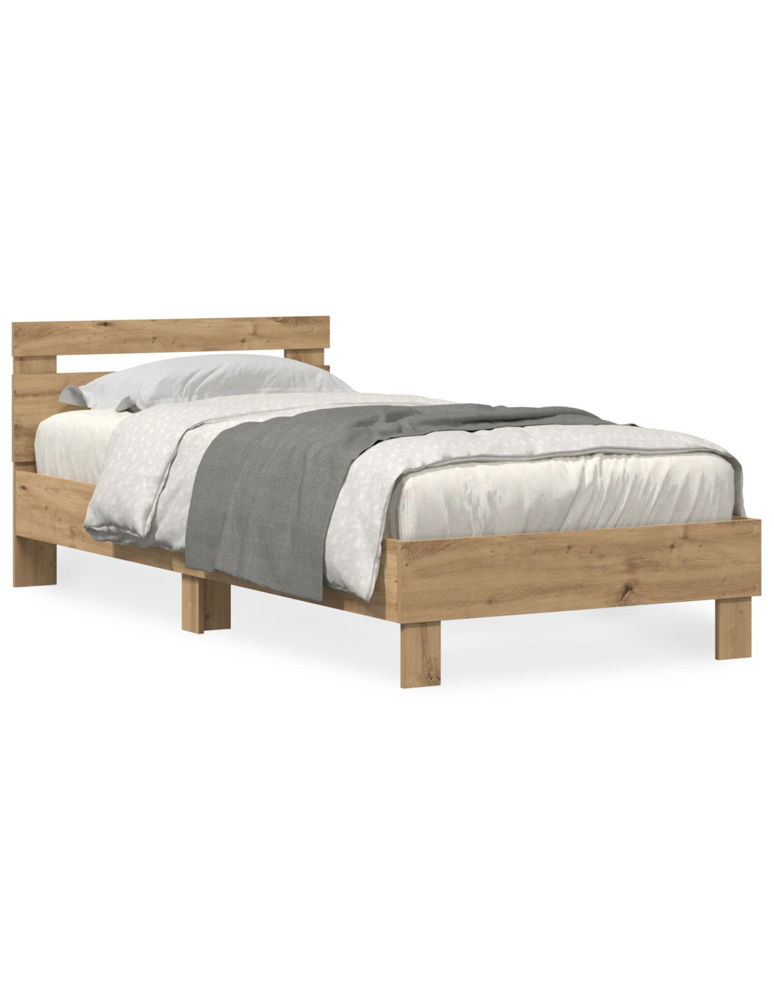 - Costruzione in legno ingegnerizzato Il letto ha una costruzione solida in legno ingegnerizzato, scelto per la sua resistenza e il suo look elegante. È fatto per resistere all'uso quotidiano, assicurando che rimanga un elemento della casa per anni, mantenendo fascino e integrità.