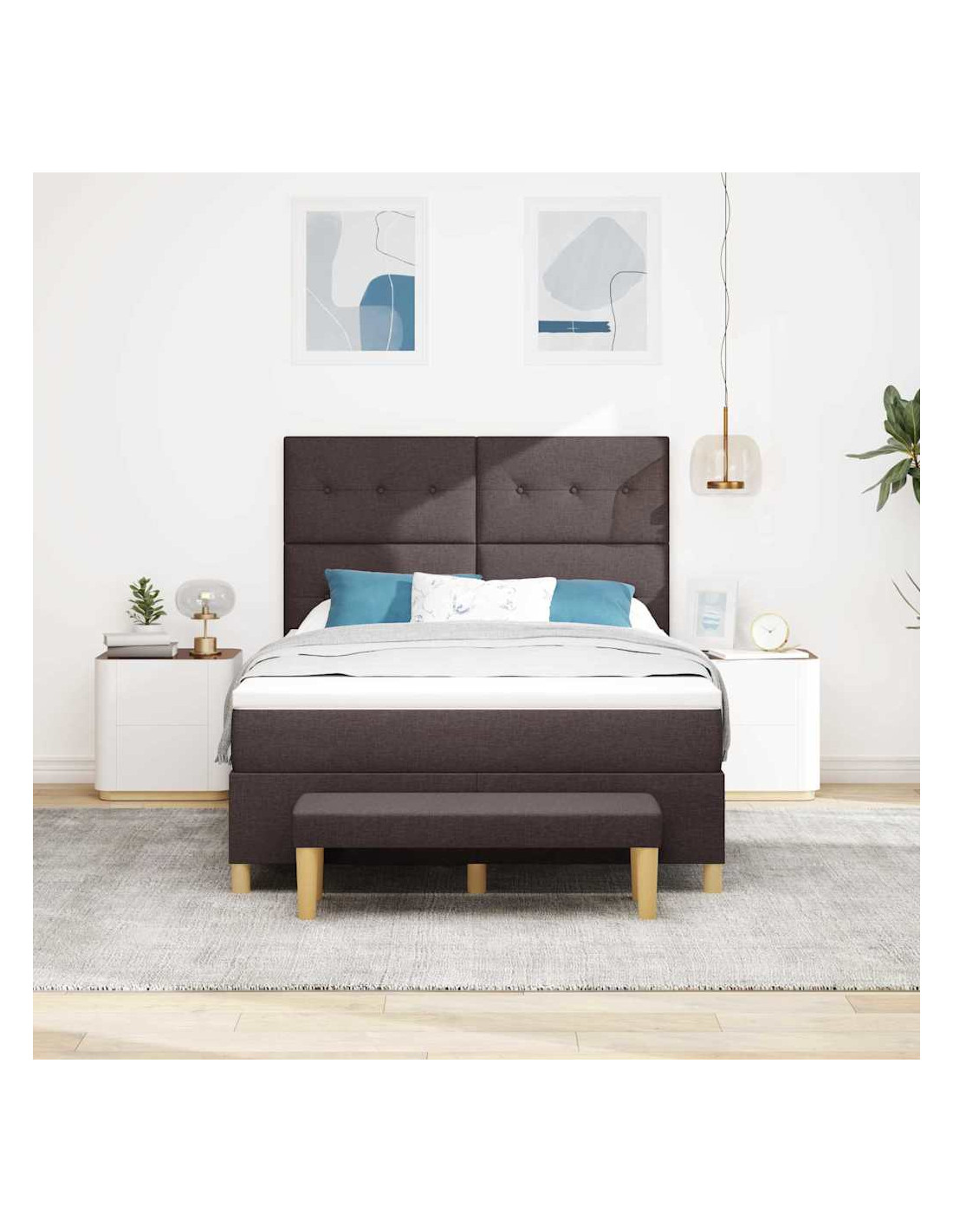 - Componenti Inclusi: Prendi tutto ciò che ti serve per dormire: un robusto telaio del letto, una testata imbottita in poliestere, un materasso in schiuma medio-rigido e una panca utile. Ogni pezzo contribuisce a una fantastica esperienza di sonno.