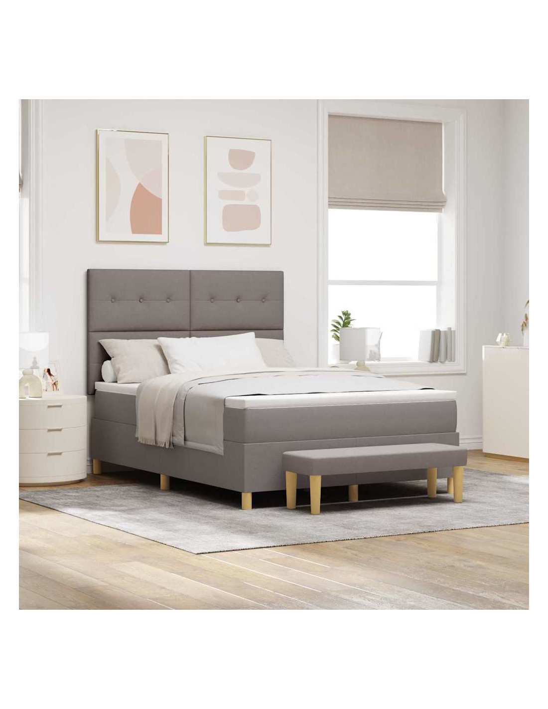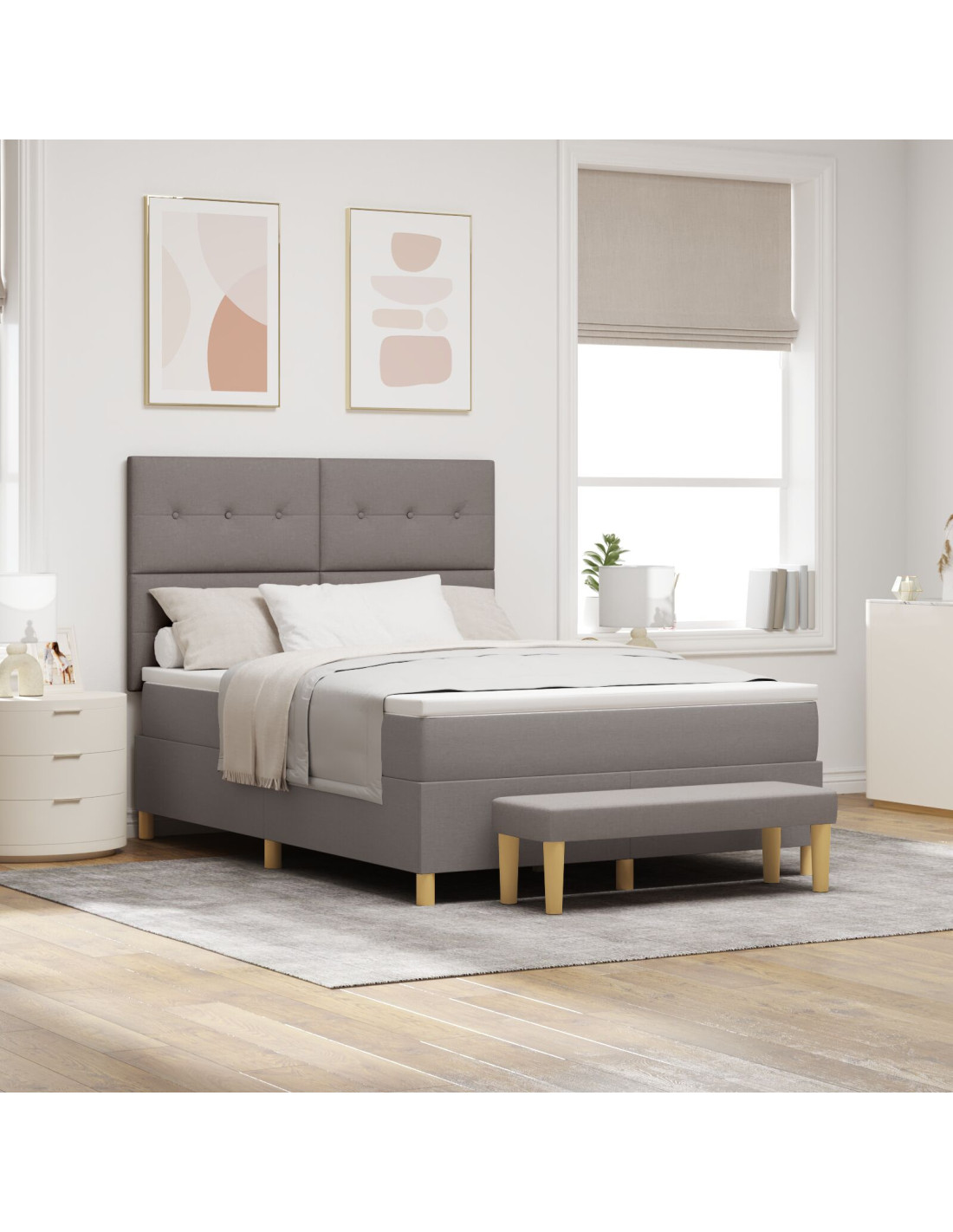 Questo telaio per letto moderno, in abbinamento a un materasso in schiuma, ha un design semplice e chic che è perfetto per le camere da letto di oggi. È costruito per dare supporto solido e comfort di alta qualità, con una finitura morbida e un tocco liscio. Il telaio trova un buon equilibrio tra funzionalità e semplicità, rendendolo un bel pezzo centrale per notti tranquille.