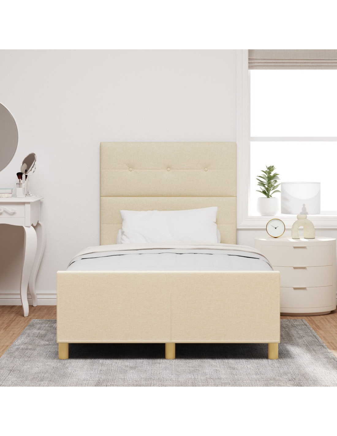 - Rivestimento in Tessuto: Rivestito in un tessuto morbido e accogliente, questo letto è elegante e confortevole. Il tessuto è piacevole al tatto e contribuisce a creare un'atmosfera serena nella tua camera, ed è anche molto resistente, mantenendo il suo aspetto nel tempo.