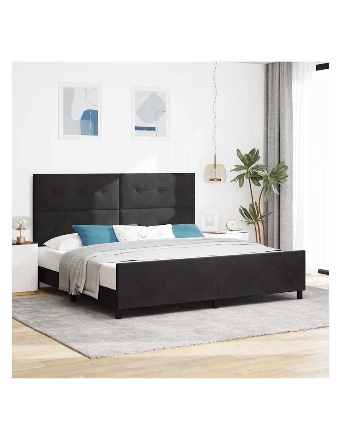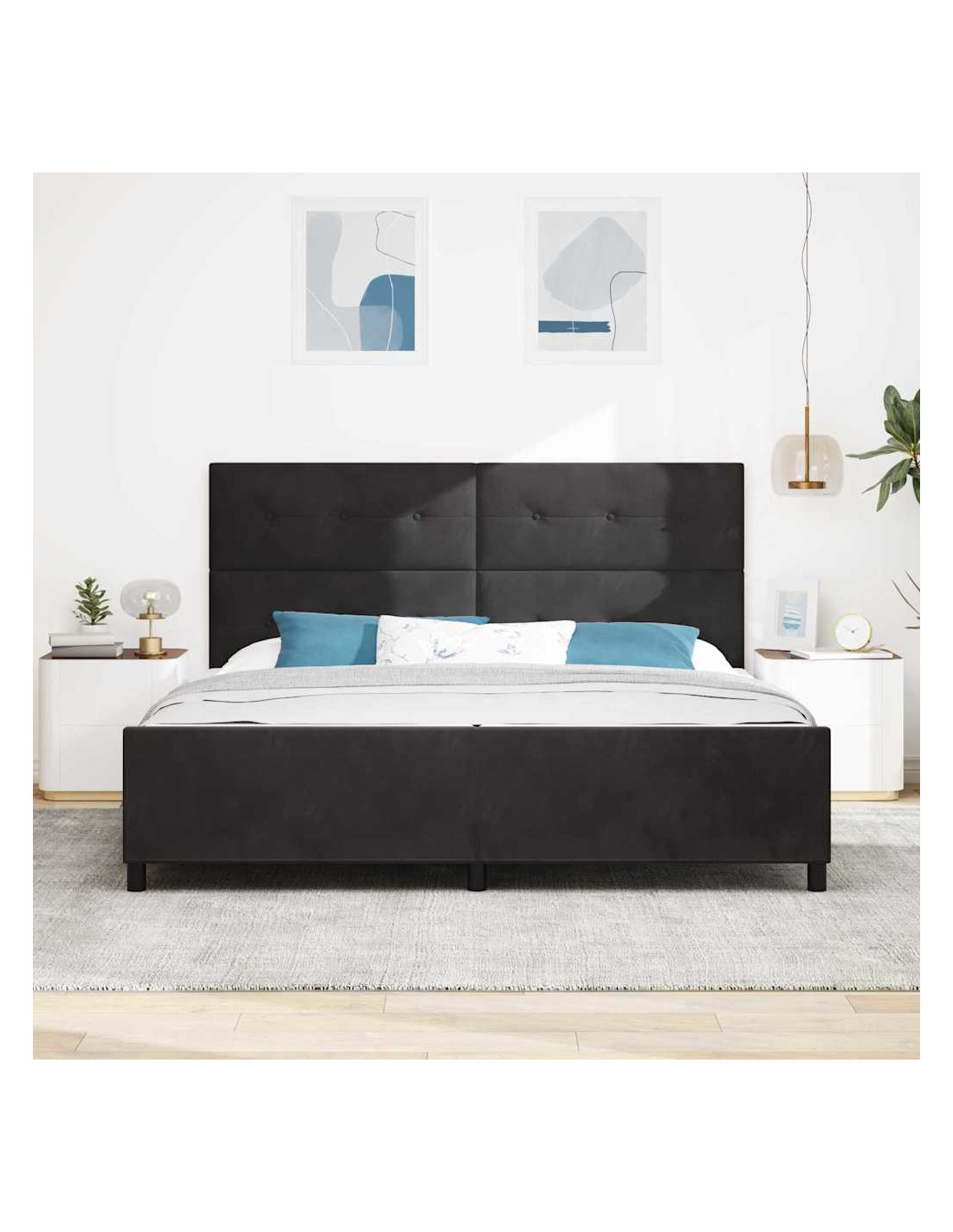 Questo letto a molle Modern Box migliora la tua esperienza di sonno con un design contemporaneo e adattabile, perfetto per ogni camera. Caratterizzato da una forma rettangolare e materiali come velluto premium e legno massello di pino, unisce lusso e praticità. Il design elegante aggiunge un tocco di modernità, assicurando supporto per un sonno confortevole.]},{