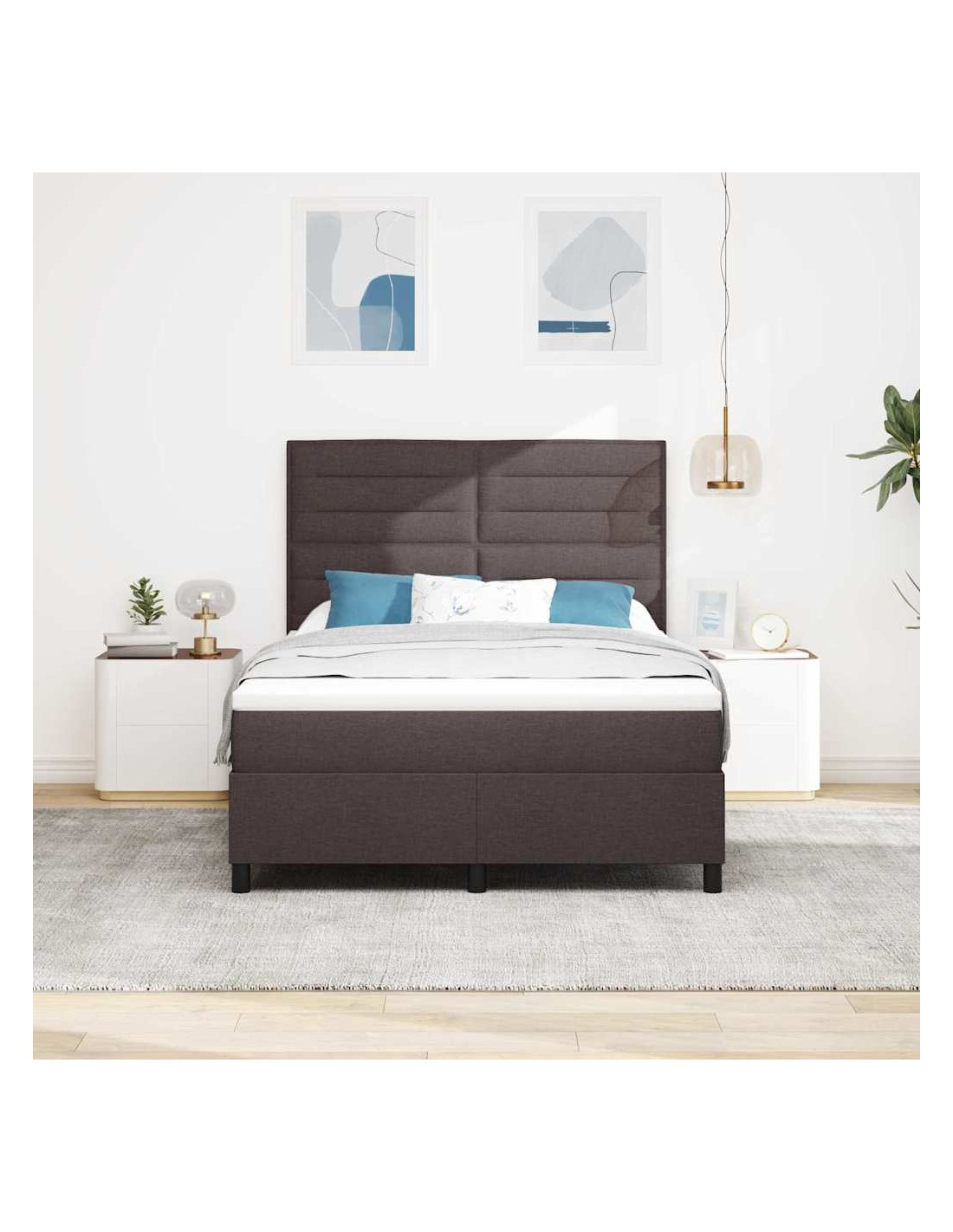 Questo elegante letto box spring moderno combina un look minimalista con funzionalità eccellenti, rendendolo una scelta versatile per ogni camera da letto. La sua forma rettangolare e le linee semplici si adattano perfettamente a uno stile di vita moderno, offrendo un comfort straordinario grazie al materasso medio-rigido, ideale per tutte le posizioni di sonno.