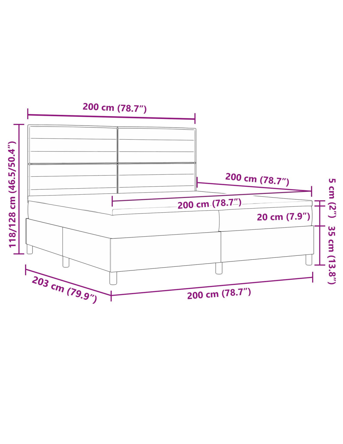 - Dimensione del materasso compatibile: Imperatore (200 cm x 200 cm / 79" x 79")