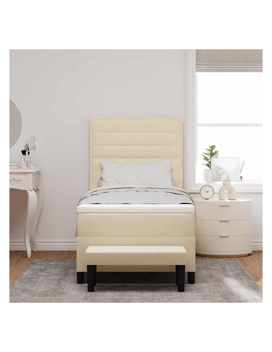 Questo letto a molle moderno unisce perfettamente stile e funzionalità, rendendolo l'ideale per qualsiasi camera da letto. È progettato per garantirti massimo comfort e una lunga durata, con la testiera regolabile e un materasso medio-rigido che offre un giusto supporto per vari stili di sonno.