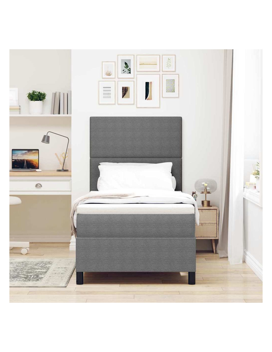 - Estetica moderna: Il design elegante di questo letto si integra perfettamente con qualsiasi arredamento. Le linee pulite e colori neutri, arricchiti da dettagli minimalisti, lo rendono un elemento ideale per una camera da letto contemporanea. Il look minimalista lo fa risaltare senza sopraffare il tuo stile personale.
