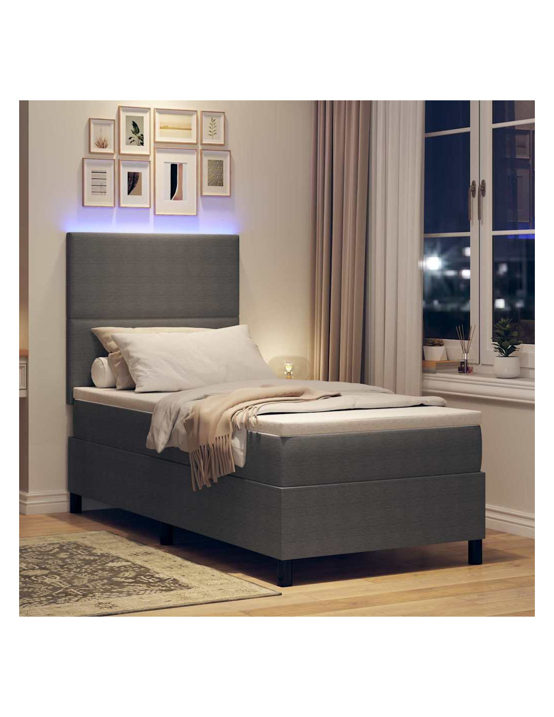 - Illuminazione LED integrata: Le strisce LED RGB nella testiera non solo danno un tocco di stile, ma forniscono anche una luce pratica per leggere di sera o per creare atmosfera. Alimentate tramite USB, queste luci sono efficienti e emettono un bagliore morbido, perfetto per un sonno tranquillo.