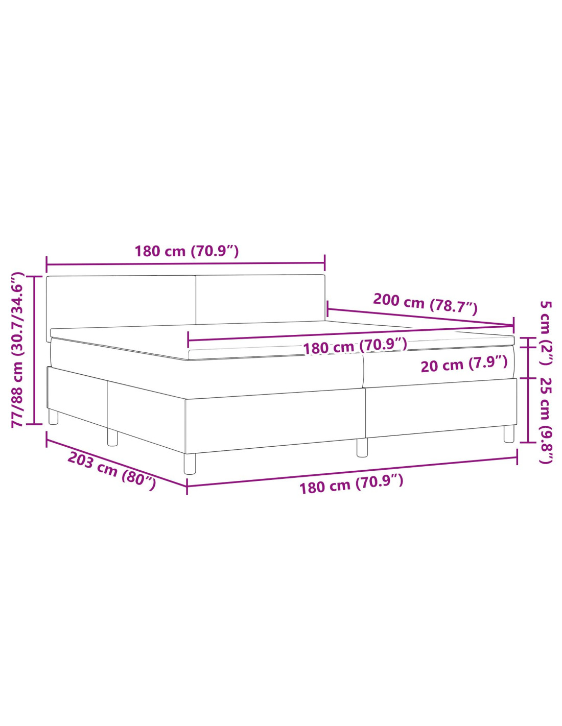 - Letto Box Spring Rettangolare: Design elegante e moderno, si adatta benissimo alle camere da letto contemporanee. La sua forma migliora sia l'aspetto che la funzionalità. Puoi integrarlo facilmente con diversi stili di decorazione, unendo versatilità e eleganza. Minimalista, riduce il disordine visivo e conferisce un aspetto sofisticato.