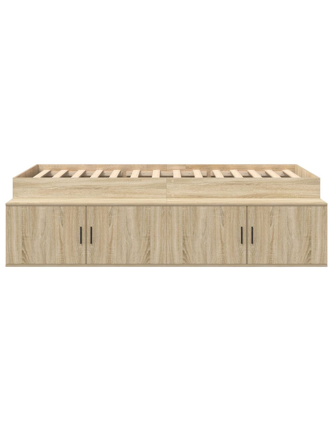- Spazio di stoccaggio ampio: Questa struttura letto ha più cassetti in legno ingegnerizzato. Ti offre spazio sufficiente per organizzare biancheria e altri oggetti, mantenendo la tua area di riposo ordinata. I cassetti si aprono facilmente grazie alle maniglie a barra, integrate nel design.