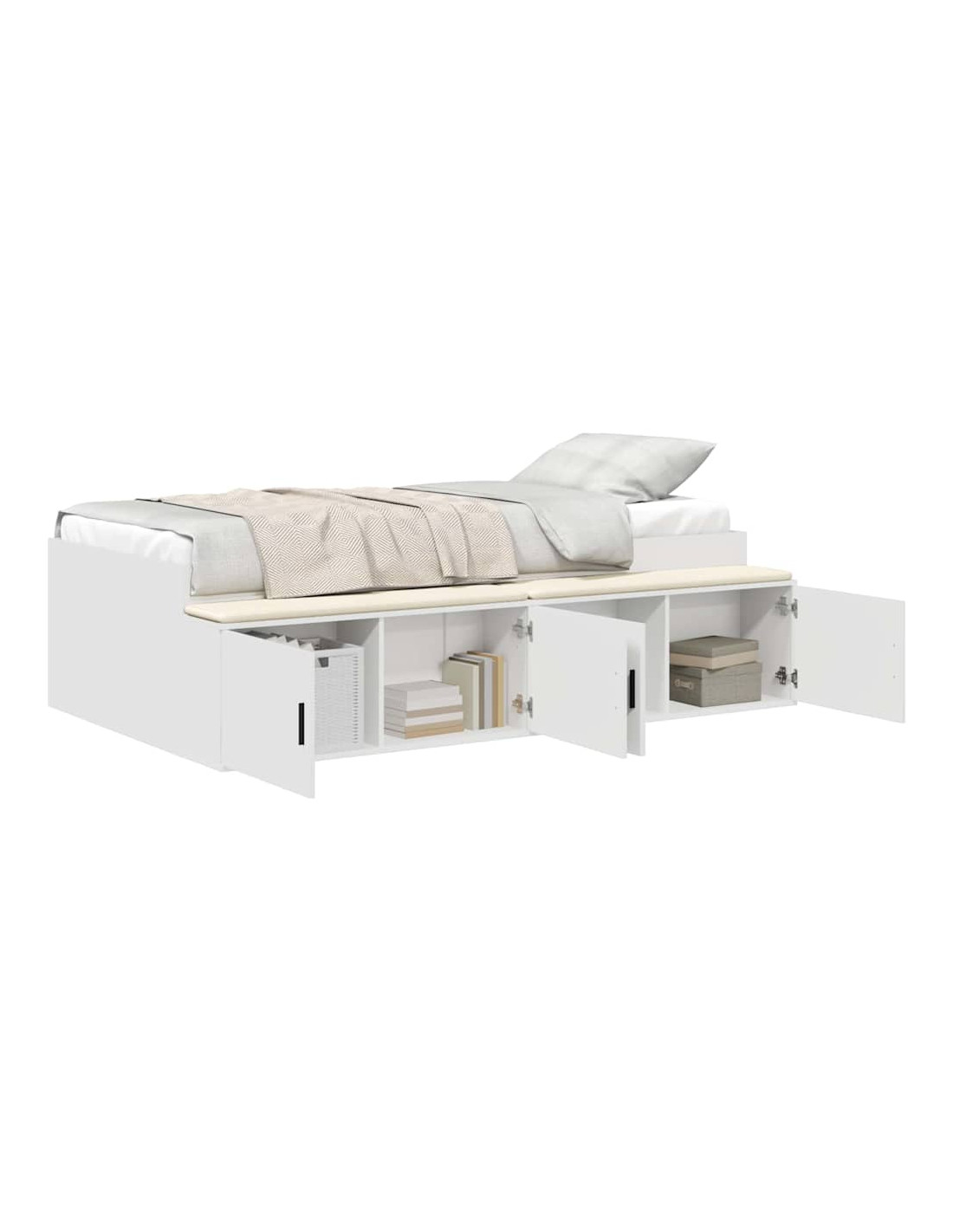 La struttura letto moderna porta un'aria fresca e funzionale nella tua camera. Con linee pulite e una superficie liscia, aggiunge un tocco di stile a qualsiasi arredamento. Progettato per offrire supporto durante la notte, questo letto è perfetto per vari stili di vita e ha spazio extra per eliminare il disordine. Costruzione in legno ingegnerizzato: Questo letto è realizzato con legno ingegnerizzato robusto, noto per la sua resistenza e stabilità. Questo materiale è perfetto per affrontare l'usura quotidiana mantenendo un aspetto impeccabile, rendendolo un mobile affidabile per anni. Spazio di stoccaggio ampio: Questa struttura letto ha più cassetti in legno ingegnerizzato. Ti offre spazio sufficiente per organizzare biancheria e altri oggetti, mantenendo la tua area di riposo ordinata. I cassetti si aprono facilmente grazie alle maniglie a barra, integrate nel design. Design moderno: Pensata per chi ama la semplicità e la funzionalità, questa struttura presenta una forma rettangolare elegante che si sposa bene con camere moderne. Questo pezzo versatile si adatta a vari stili di arredamento, diventando così una scelta pratica e stilosa. Accesso facile: Con una finitura posteriore bella, puoi mettere il letto in qualsiasi direzione. Che sia appoggiato a un muro o come protagonista della stanza, ha un aspetto fantastico da qualsiasi angolo. Manutenzione semplice: Mantenere il letto pulito è facile. Basta passare un panno umido per rimuovere polvere e briciole, così la tua zona notte resta fresca e accogliente.