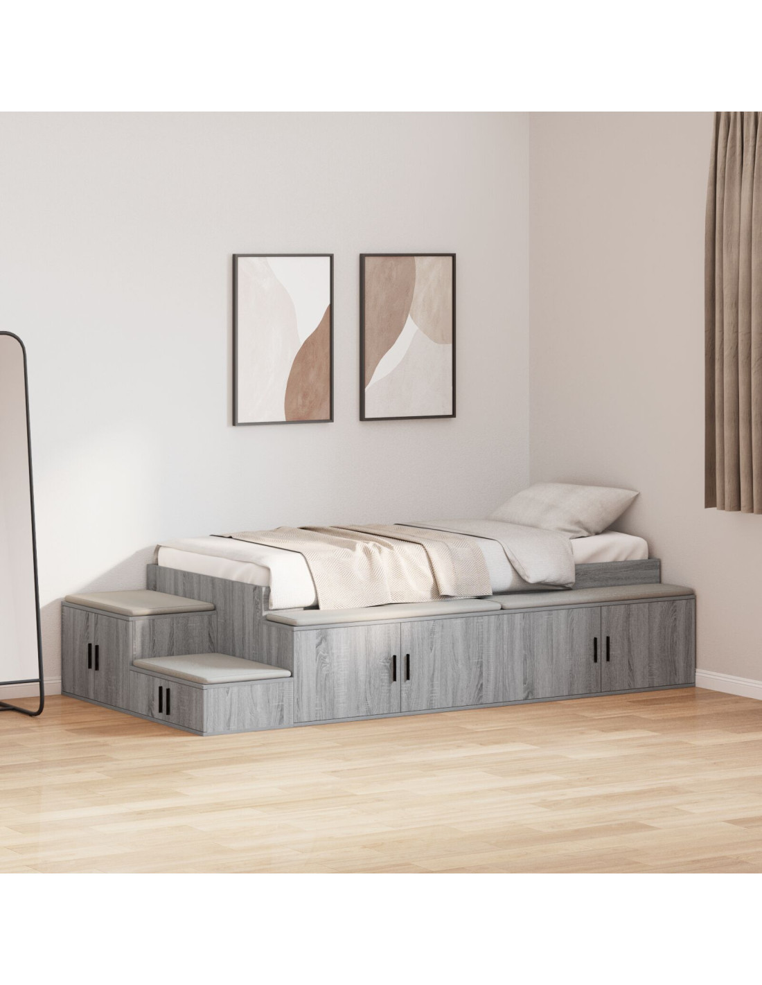 - Porta a cerniera incorporata: Le porte a cerniera, con maniglie a barra, sono concepite per un facile accesso ai compartimenti sotto il letto, aiutandoti a organizzare i tuoi effetti personali, rendendo il tuo spazio più efficiente.