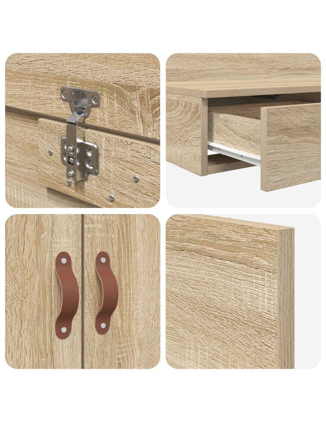 - Soluzioni di stoccaggio smart Con porte e cassetti integrati in legno ingegnerizzato, questo letto sfrutta al massimo lo spazio di stoccaggio senza perdere in estetica. Le maniglie in pelle danno un bel tocco caldo e permettono di accedere facilmente a ciò che c'è dentro.