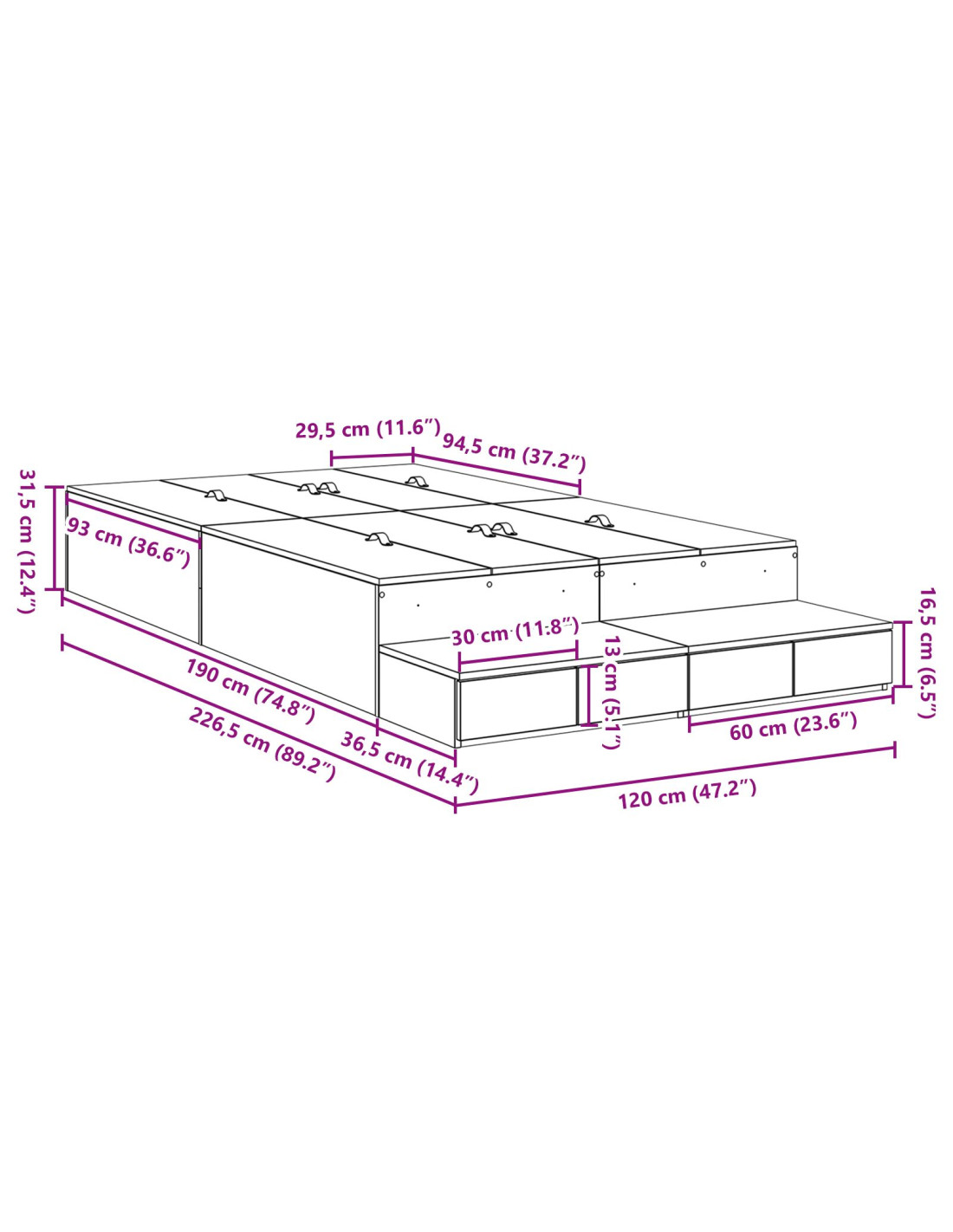 - Altezza letto: 31.5 cm