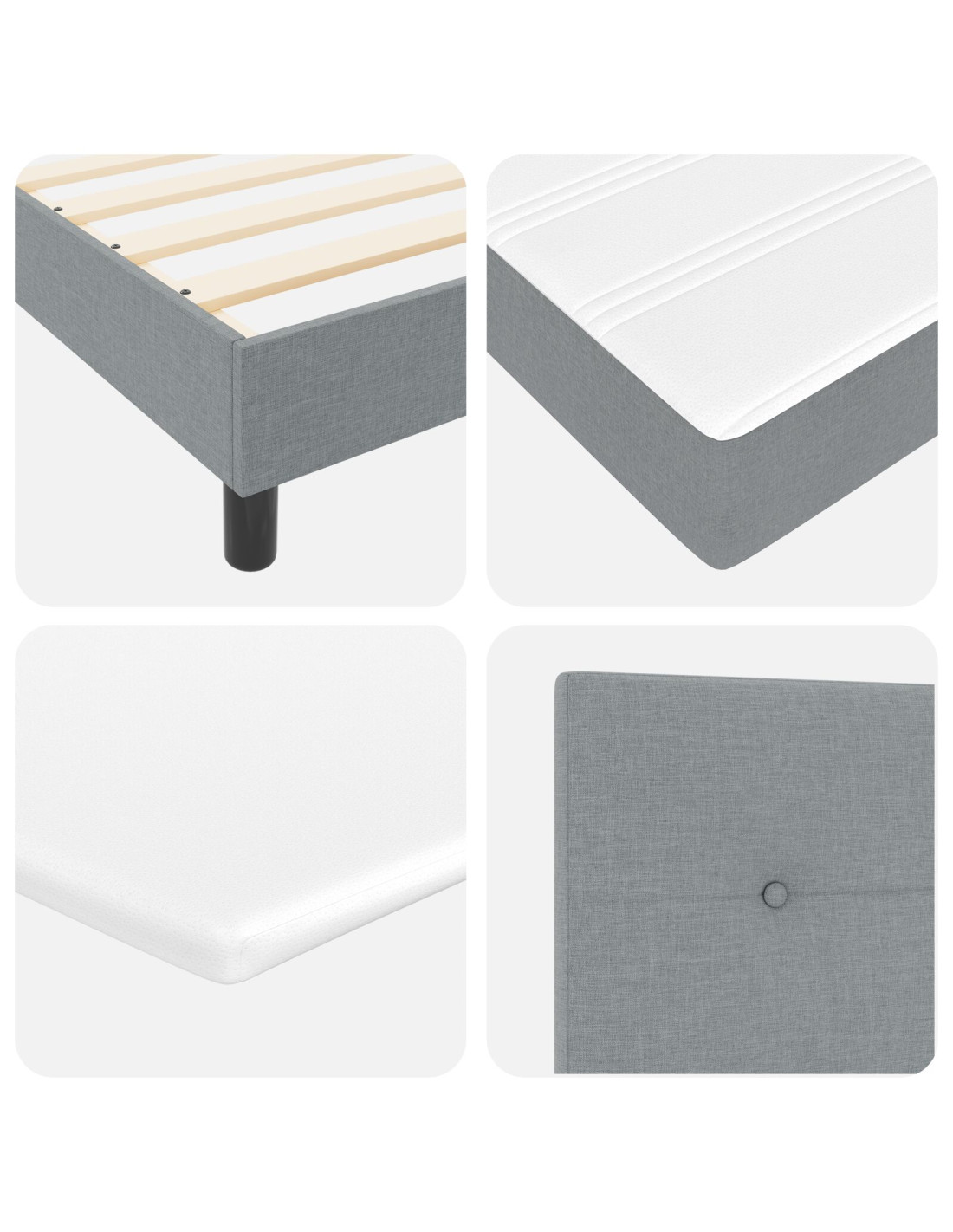 - Componenti Inclusi: Include un materasso flessibile con molle insacchettate per un supporto personalizzato, riducendo il trasferimento di movimento. La testiera in poliestere di alta qualità è sia accogliente che visivamente attraente, arricchendo l'atmosfera della camera. Ogni componente è selezionato con cura per offrire comfort e stile, migliorando l'esperienza dell'utente.