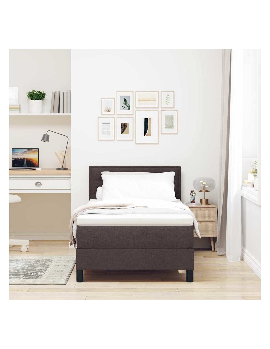 Questo letto con rete è un mix perfetto di funzionalità e aspetto moderno, offrendoti un posto accogliente dove riposare con stile. Ha un design pulito e minimalista, ideale per chi vive in città e cerca un tocco di raffinatezza. Con un telaio robusto e una superficie morbida, è fatto di legno ingegnerizzato e poliestere, il tutto per assicurarti durata e comfort. Che si tratti della camera matrimoniale o di una camera per gli ospiti, questo letto si inserisce benissimo, mostrando la sua versatilità.