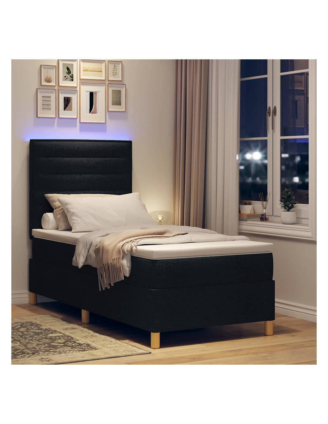 Questo letto a molle con LED è un grande protagonista in qualsiasi camera moderna. Con il suo design elegante e minimale, è ideale per chi ama lo stile semplice e funzionale. Realizzato con materiali resistenti e dotato di luci LED, è perfetto per il tuo angolo notturno, unendo estetica e praticità per una notte di riposo migliore.