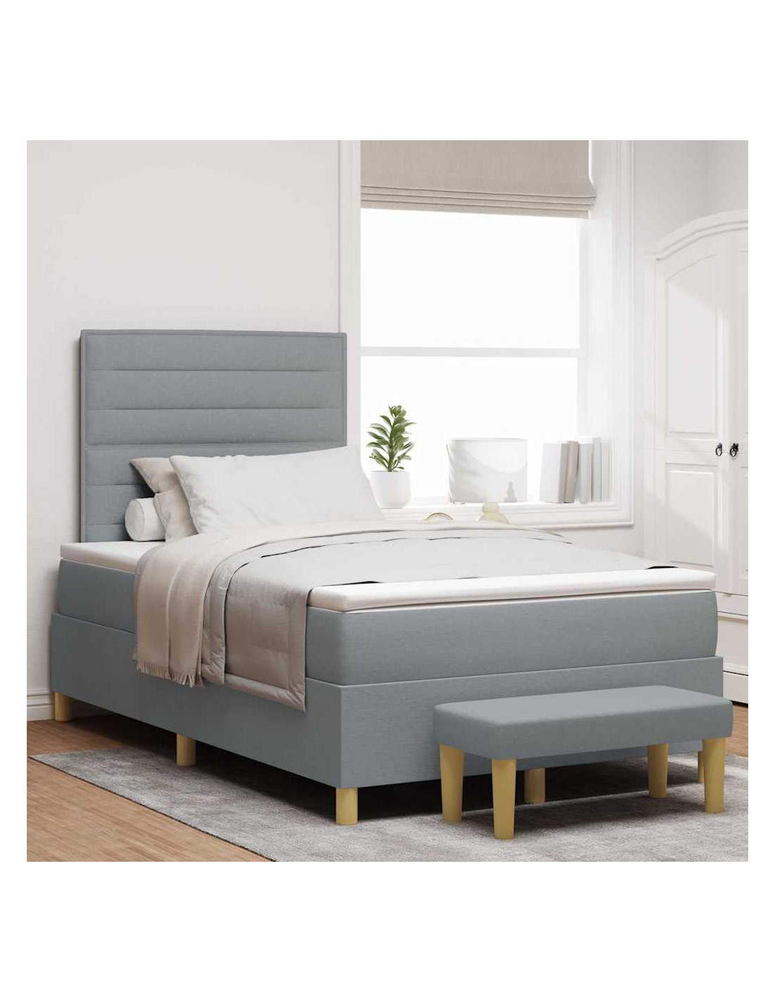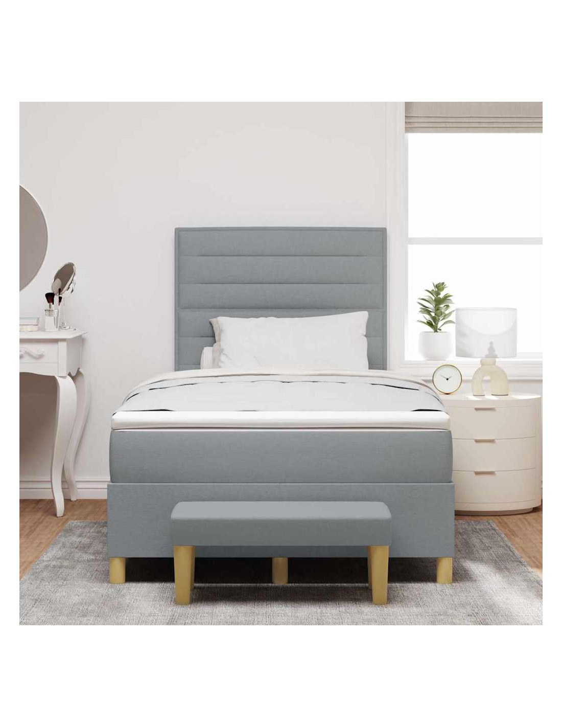 - Componenti Inclusi: Prendi tutto ciò che ti serve per dormire: un robusto telaio del letto, una testata imbottita in poliestere, un materasso in schiuma medio-rigido e una panca utile. Ogni pezzo contribuisce a una fantastica esperienza di sonno.