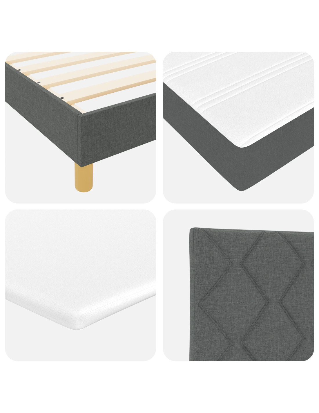 - Piedi robusti: Ogni gamba ha un design minimalista che offre supporto e stabilità. Queste gambe fanno sì che il letto appaia elegante e sicuro, adattandosi facilmente a vari stili di interni.