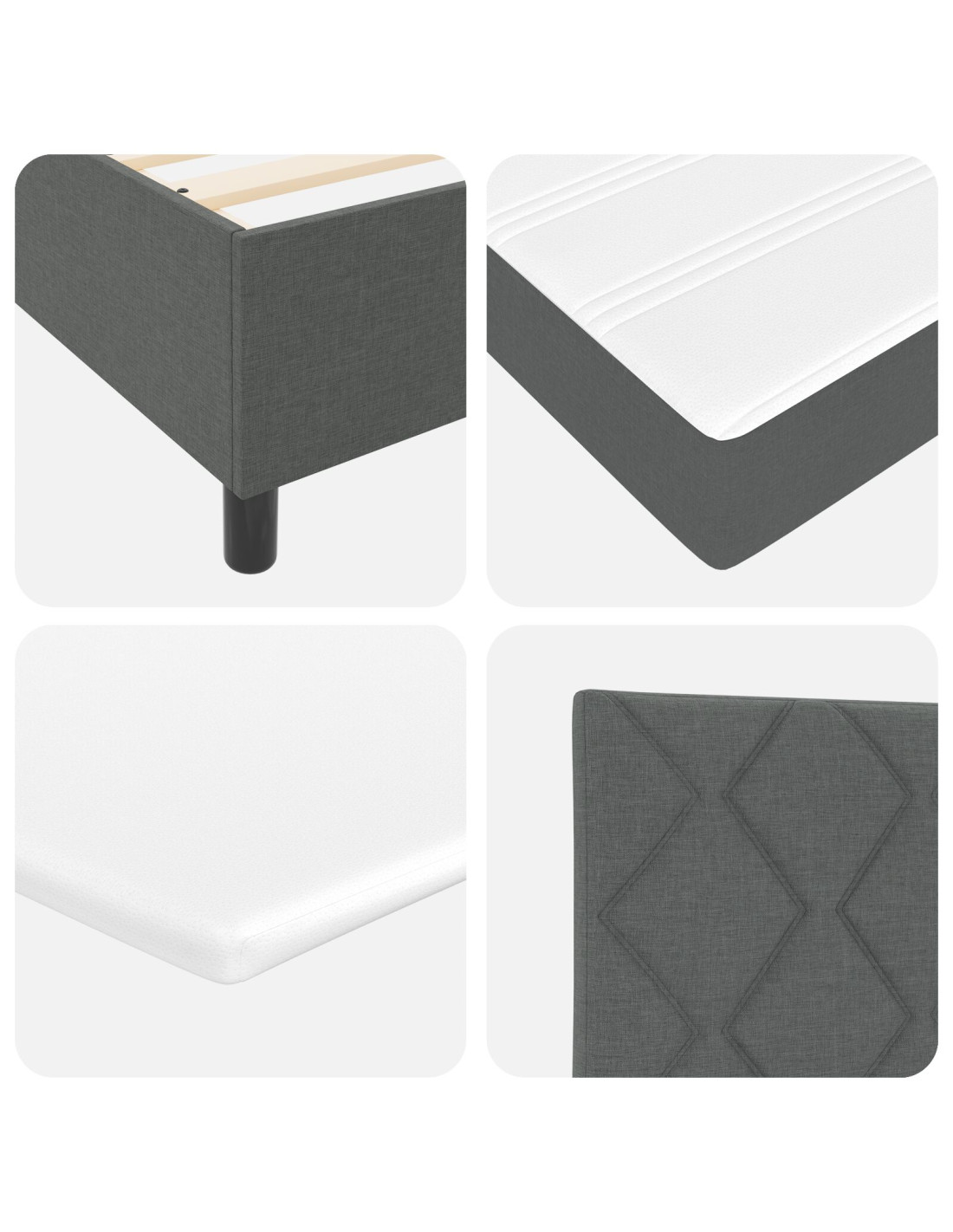 - Componenti funzionali: La struttura a doghe fisse offre un supporto robusto, aiutando a mantenere il tuo materasso in buone condizioni. Le doghe sono in legno o metallo di qualità, per una stabilità essenziale. I piedi in plastica nera aggiungono un tocco estetico e un supporto sicuro.