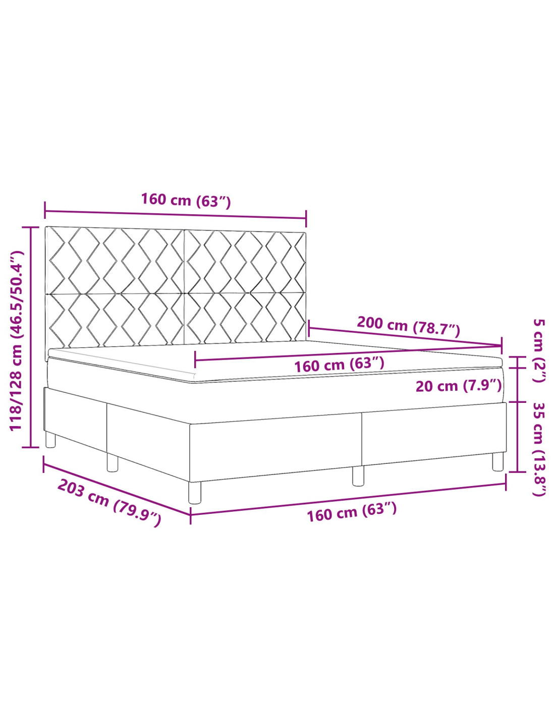 - Dimensione materasso: King (160 cm x 200 cm / 63" x 79")