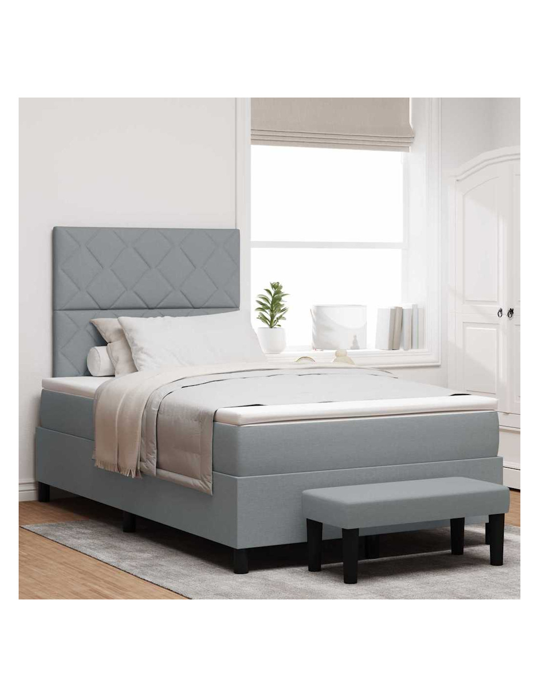Questo letto a molle moderno unisce perfettamente stile e funzionalità, rendendolo l'ideale per qualsiasi camera da letto. È progettato per garantirti massimo comfort e una lunga durata, con la testiera regolabile e un materasso medio-rigido che offre un giusto supporto per vari stili di sonno.