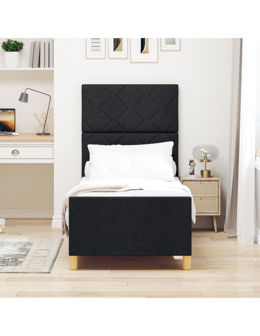 - Componenti Inclusi: Il letto arriva con una testiera e un piedino, aumentando la stabilità e il look complessivo. Questi elementi migliorano la solidità e rendono l'assemblaggio facile, così chiunque può partecipare.