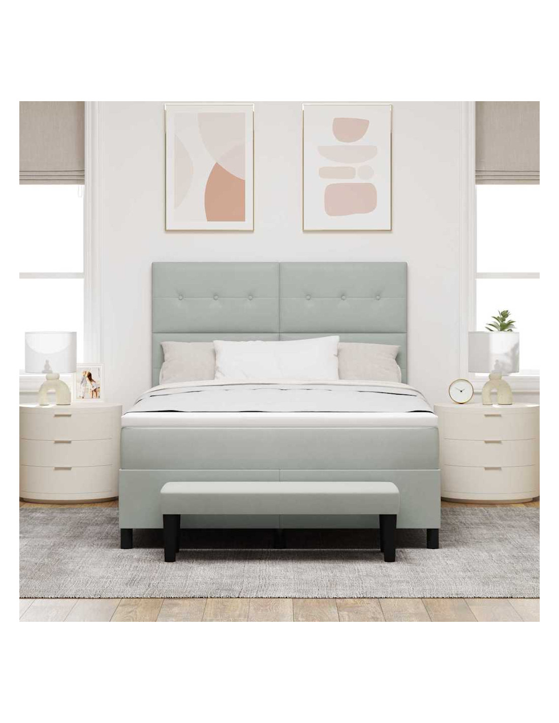 Preparati a un comfort incredibile con il letto a molle che renderà la tua camera un posto rilassante e stiloso. Ha un look moderno e mantiene tutto semplice, con linee che non passano mai di moda. La lussuosa testiera in velluto è morbida e aggiunge un tocco di eleganza, perfetta per gli spazi di chi cerca un po'di stile. Immagina un rifugio accogliente dove ogni momento è rilassante e tranquillo.