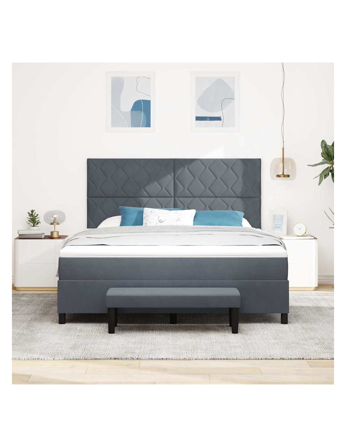 Preparati a un comfort incredibile con il letto a molle che renderà la tua camera un posto rilassante e stiloso. Ha un look moderno e mantiene tutto semplice, con linee che non passano mai di moda. La lussuosa testiera in velluto è morbida e aggiunge un tocco di eleganza, perfetta per gli spazi di chi cerca un po'di stile. Immagina un rifugio accogliente dove ogni momento è rilassante e tranquillo.