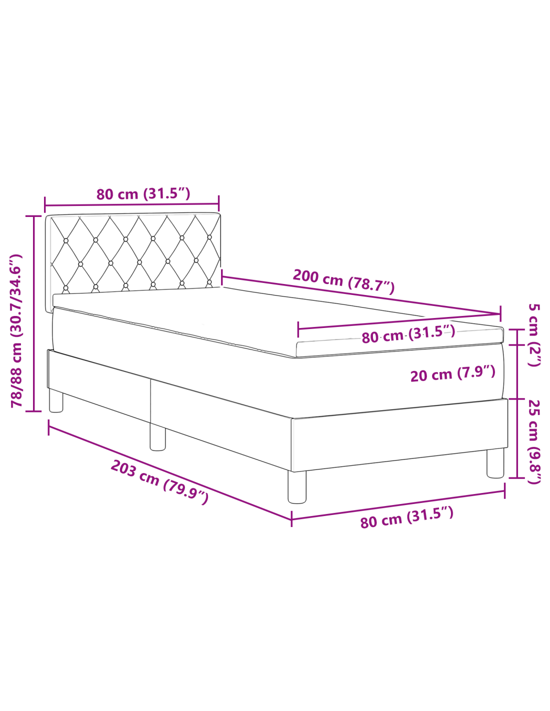 - Dimensione materasso: Piccolo singolo (80 cm x 200 cm / 31" x 79")