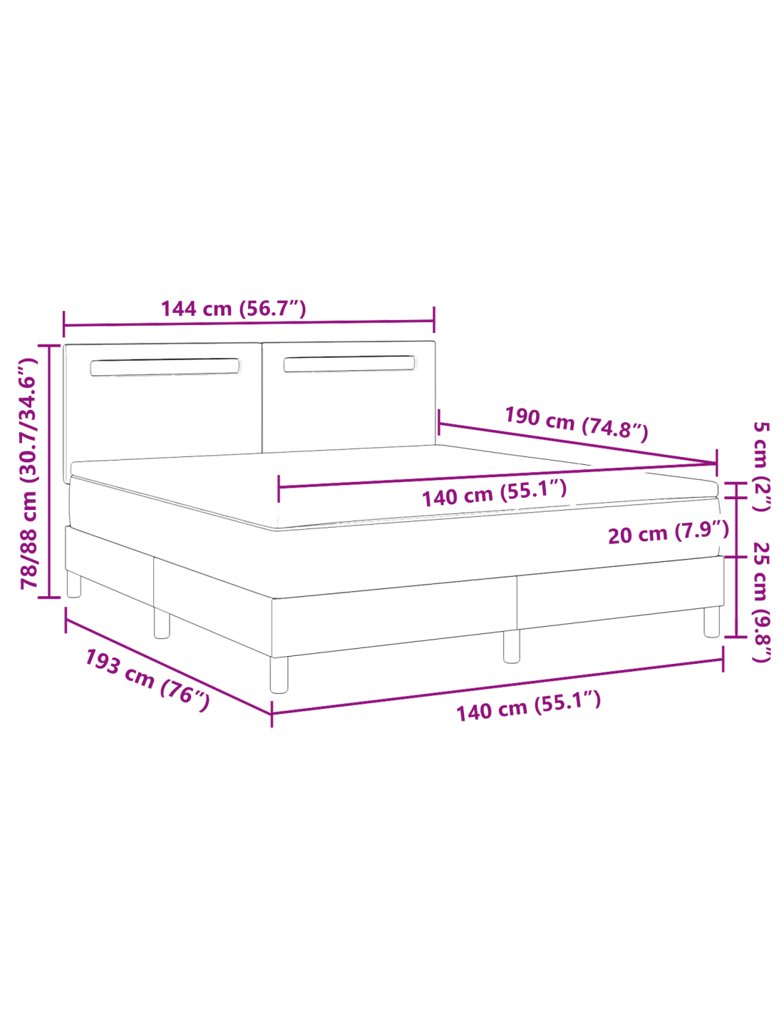 - 1x Struttura del letto: 193 x 143 x 25 cm (LxWxH)